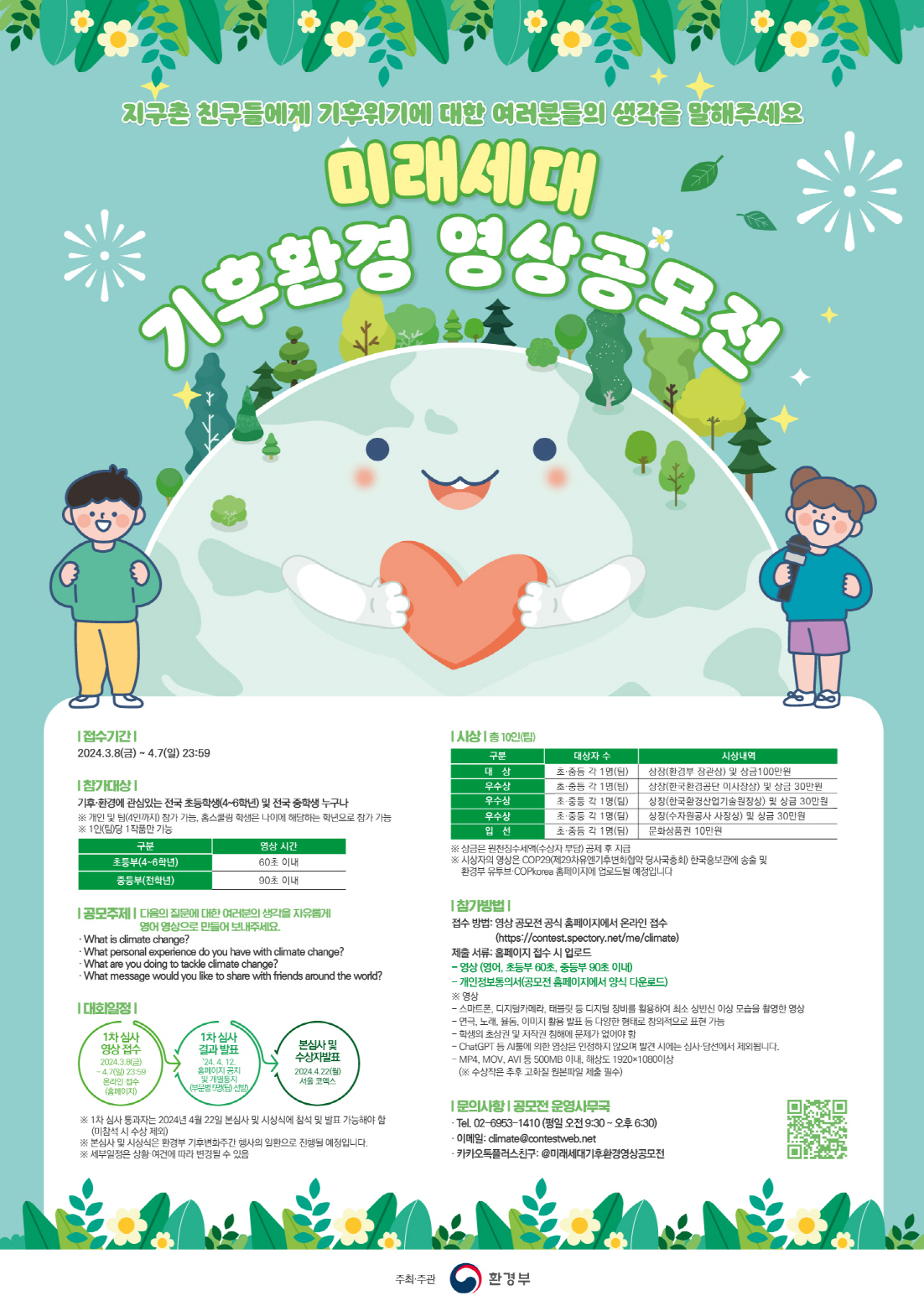 - 카카오톡플러스친구 : @미래세대기후환경영상공모전