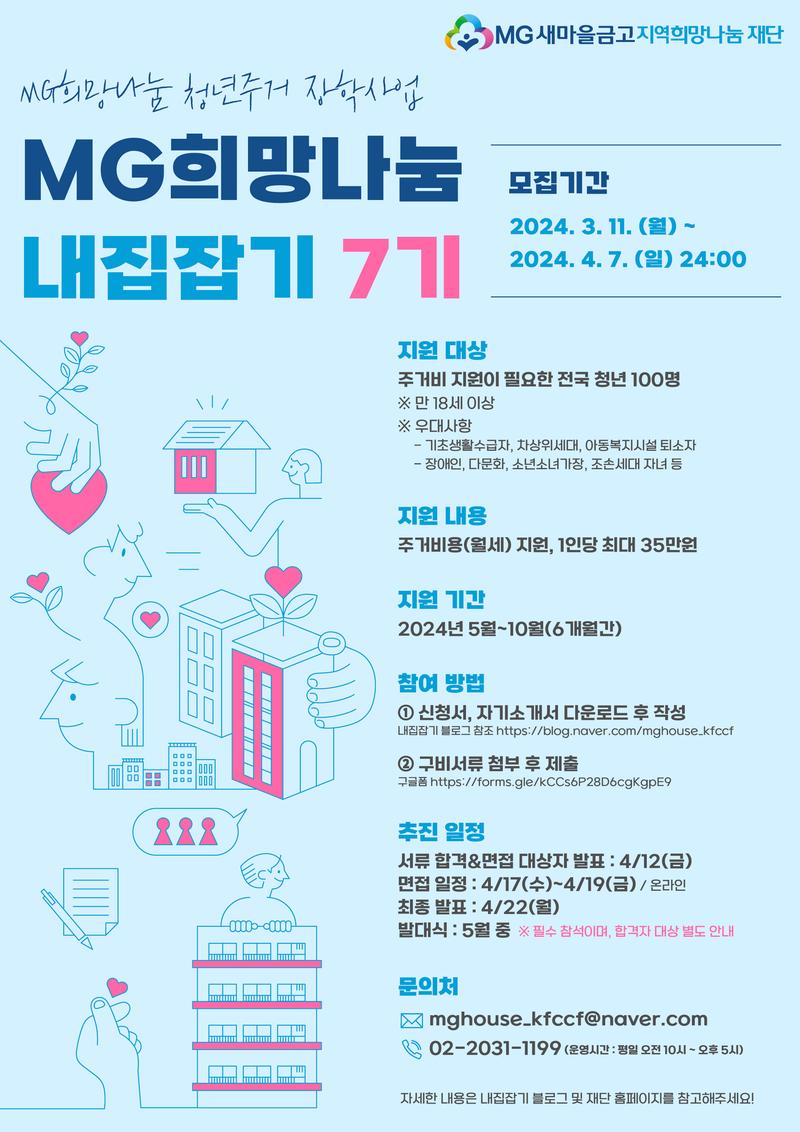 MG새마을금고 지역희망나눔재단에서 '내집잡기 7기'를 모집합니다.