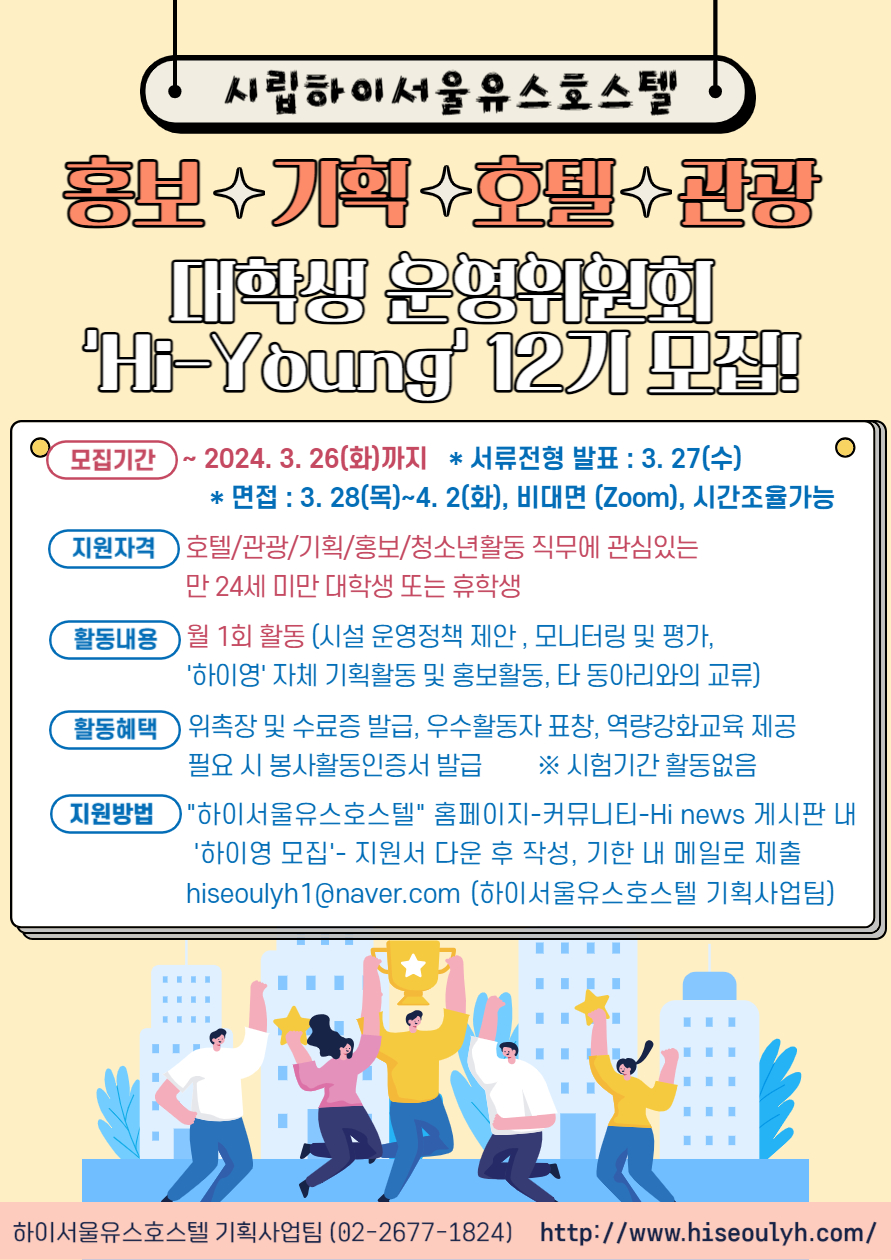 시립하이서울유스호스텔 하이영 (청소년운영위원회) 12기 추가모집