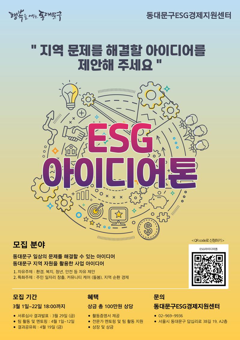동대문구 일상에서 마주하는 문제들을 함께 해결해 나가는 ESG 아이디어톤을 개최합니다.