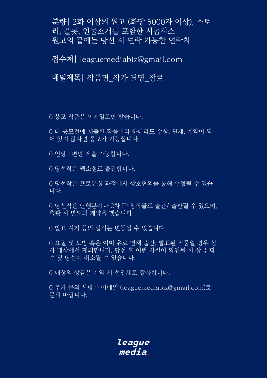 0 추가 문의 사항은 이메일 (leaguemediabiz@gmail.com)로 문의 바랍니다.