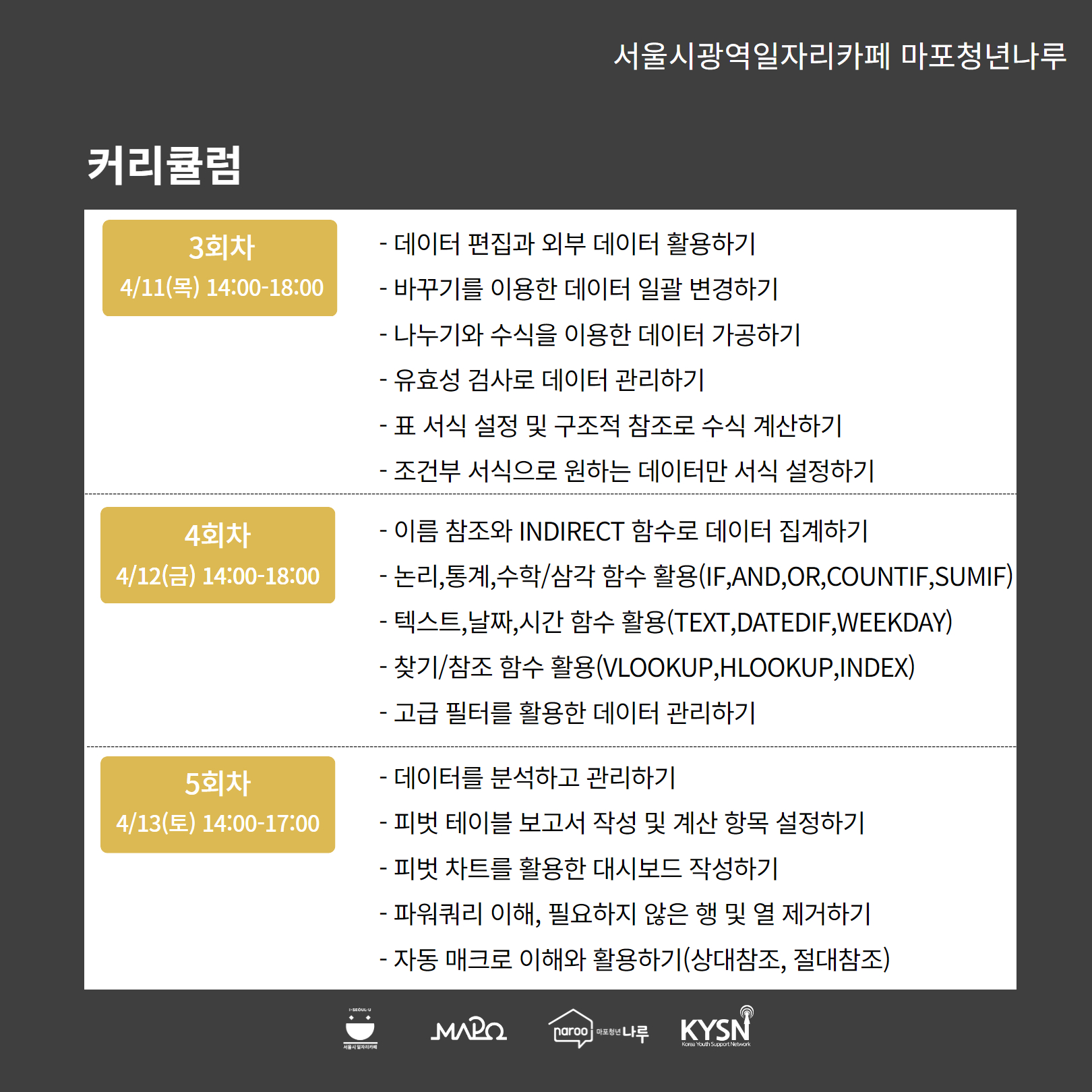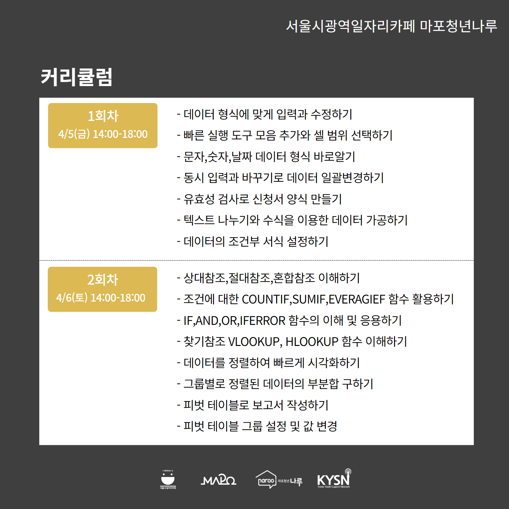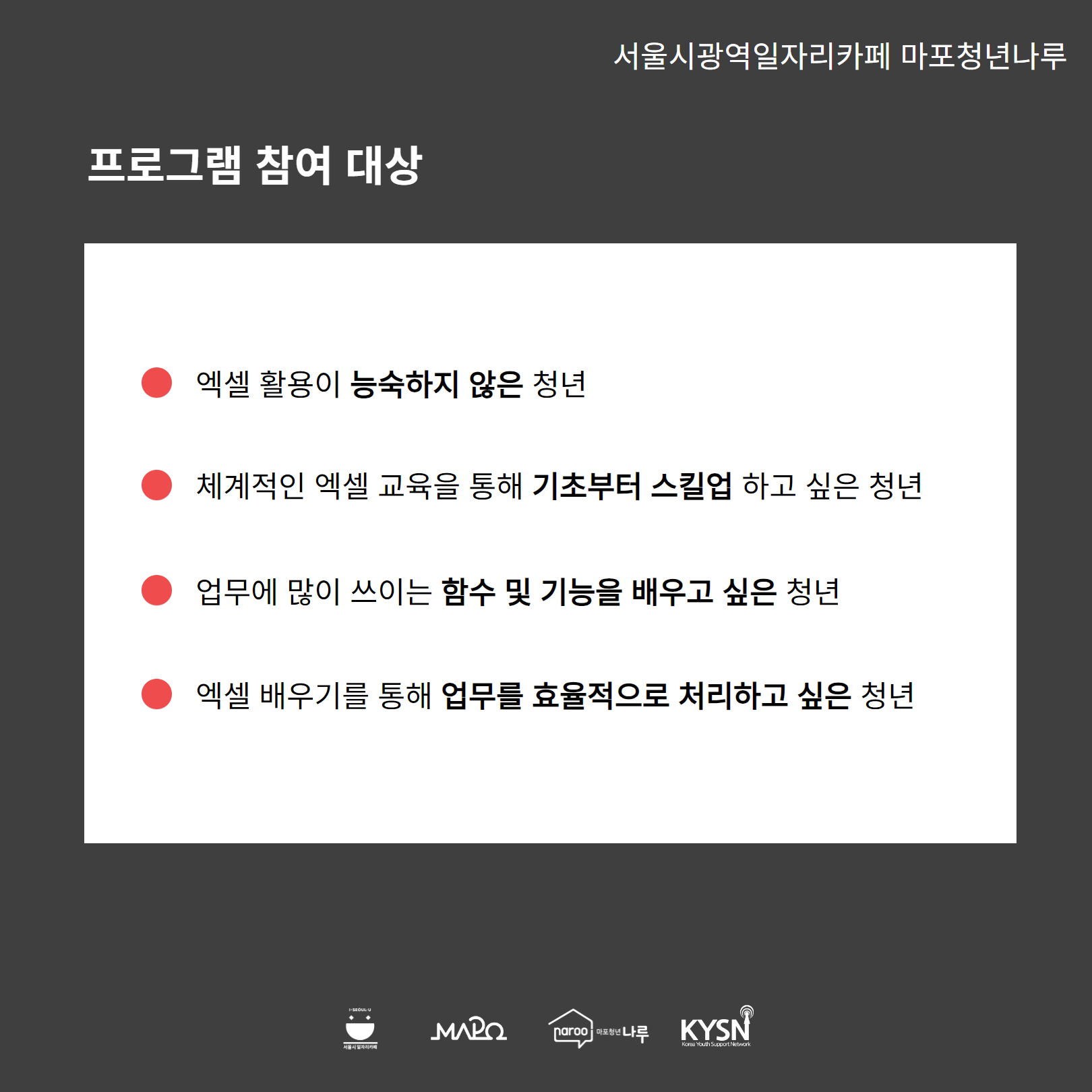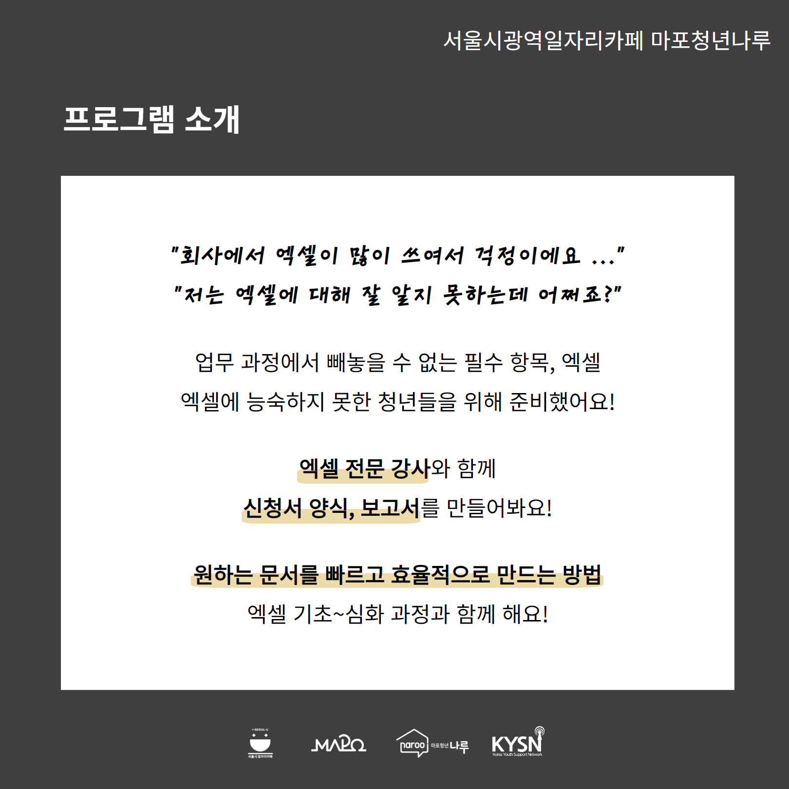 엑셀에 능숙하지 못한 청년들을 위해 나루에서 준비했어요 :)