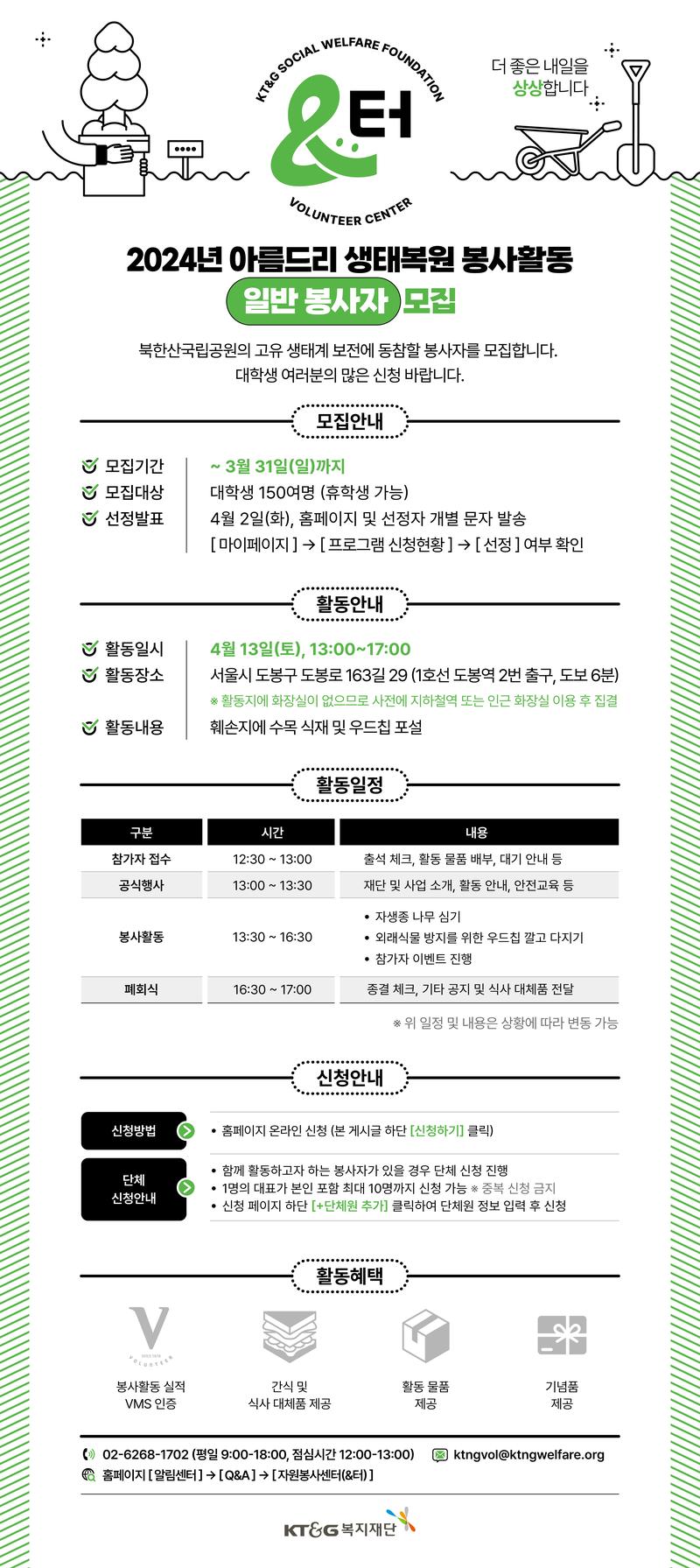 북한산국립공원의 고유 생태계 보전에 동참할 봉사자를 모집합니다.