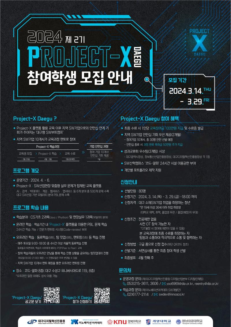 (재)대구디지털혁신진흥원과 42서울을 운영하는 (재)이노베이션아카데미가 합작한 SW개발자 양성과정 Project-X 대구 2기 교육생을 모집합니다!