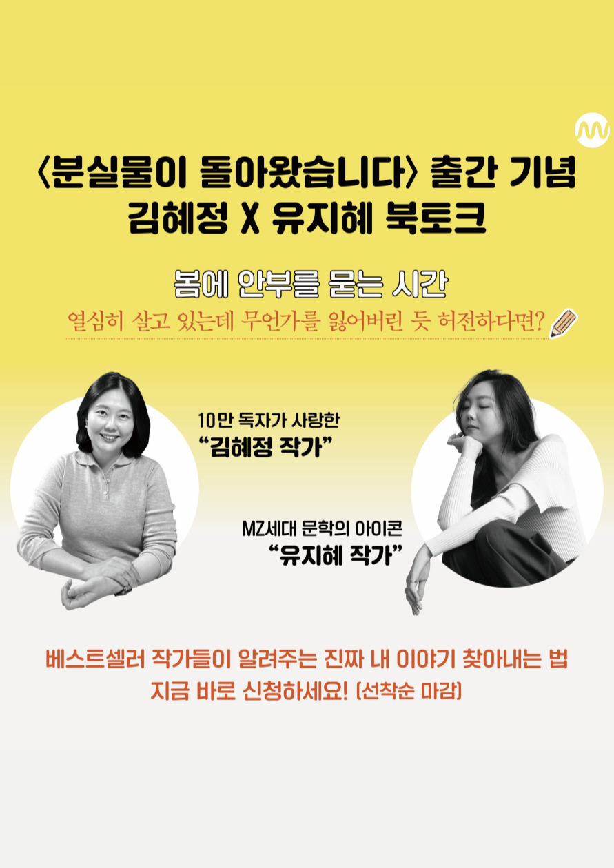 유지혜 X 김혜정 작가와 함께하는 <분실물이 돌아왔습니다> 북토크 초대장💌
