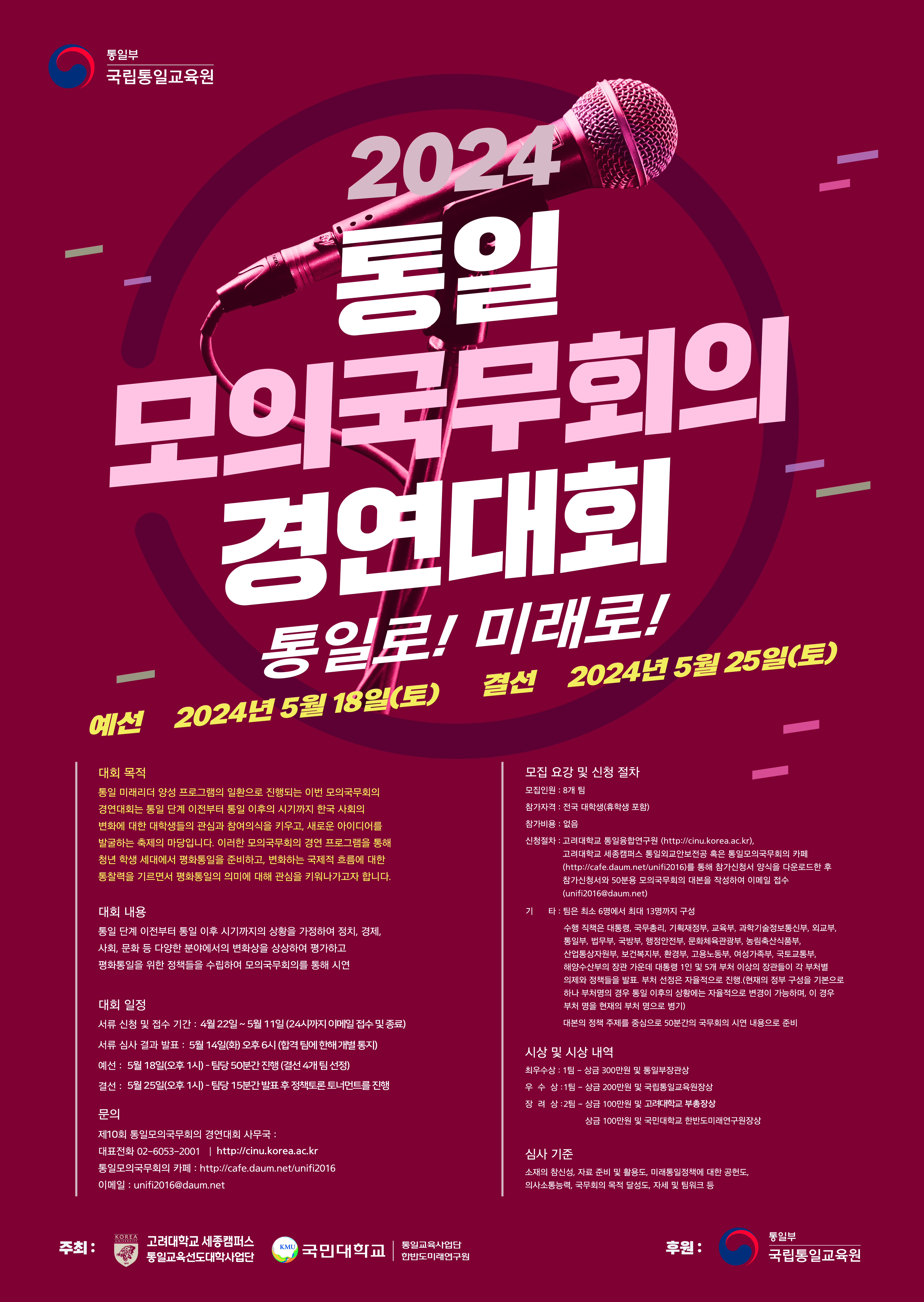 전화 : 02-6053-2001 <제10회 통일모의국무회의 경연대회 사무국> 통일모의국무회의 카페 주소 : http://cafe.daum.net/unifi2016 전자우편 : unifi2016@daum.net