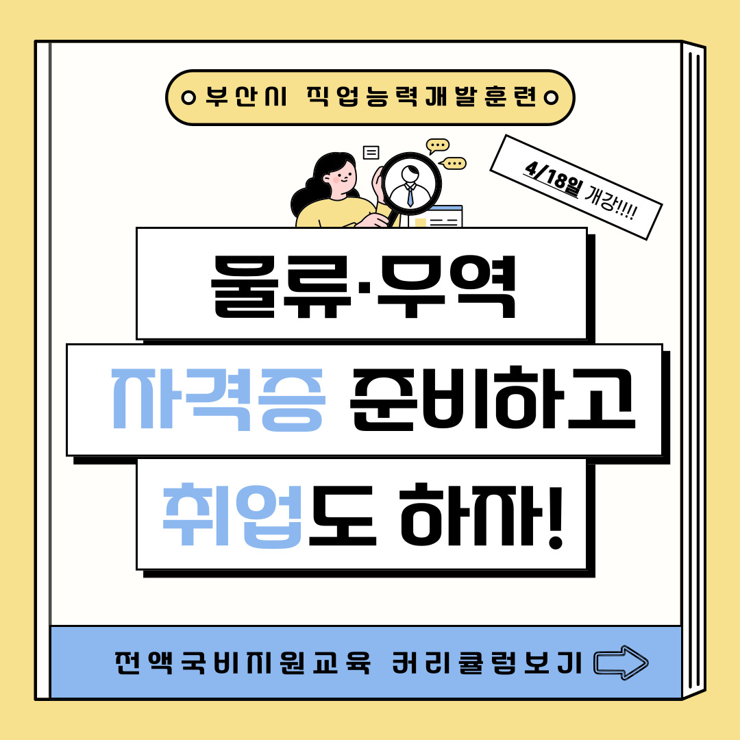 [부산광역시] 물류/무역 자격증 전액지원반 모집(물류관리사, 국제무역사, 무역영어 등)
