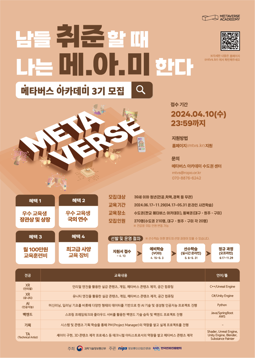 과학기술정보통신부 주최, 청년인재 양성사업 [메타버스 아카데미]! 3기 모집 시작