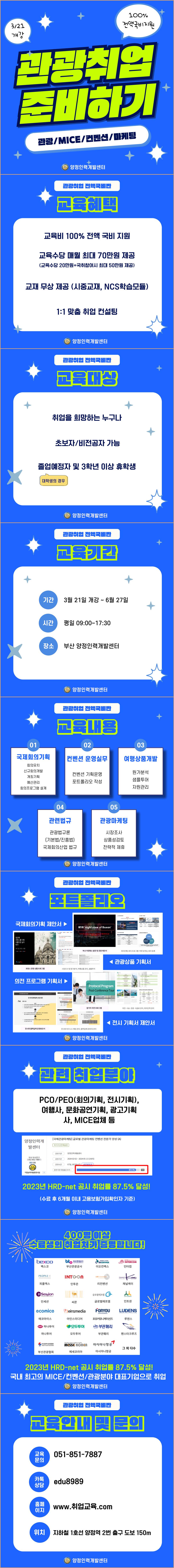 [부산/전액국비]관광/마케팅/컨벤션 /기획 취업교육생 모집(스펙+포트폴리오)