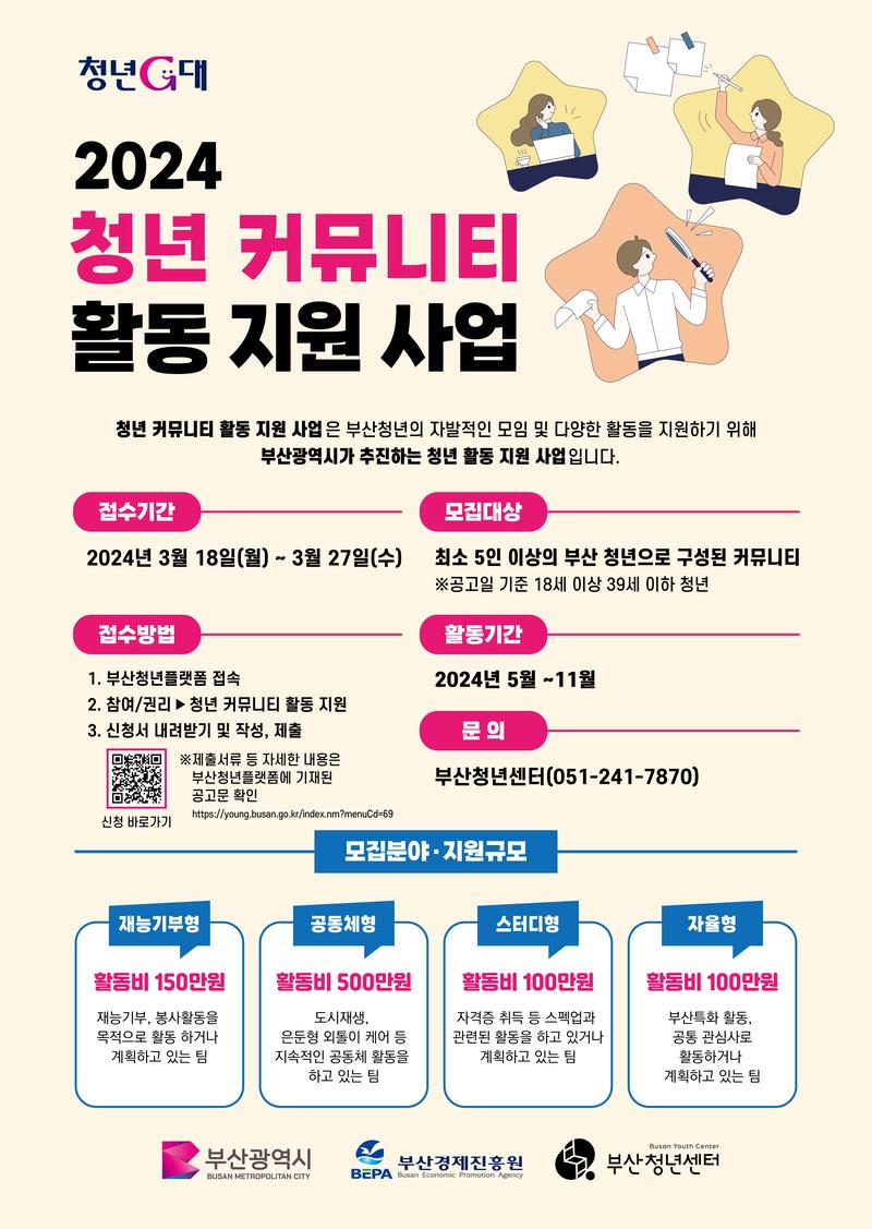 ▪️신청방법 ❘ 청년𝐆대 부산청년플랫폼 홈페이지 또는 𝐐𝐑코드