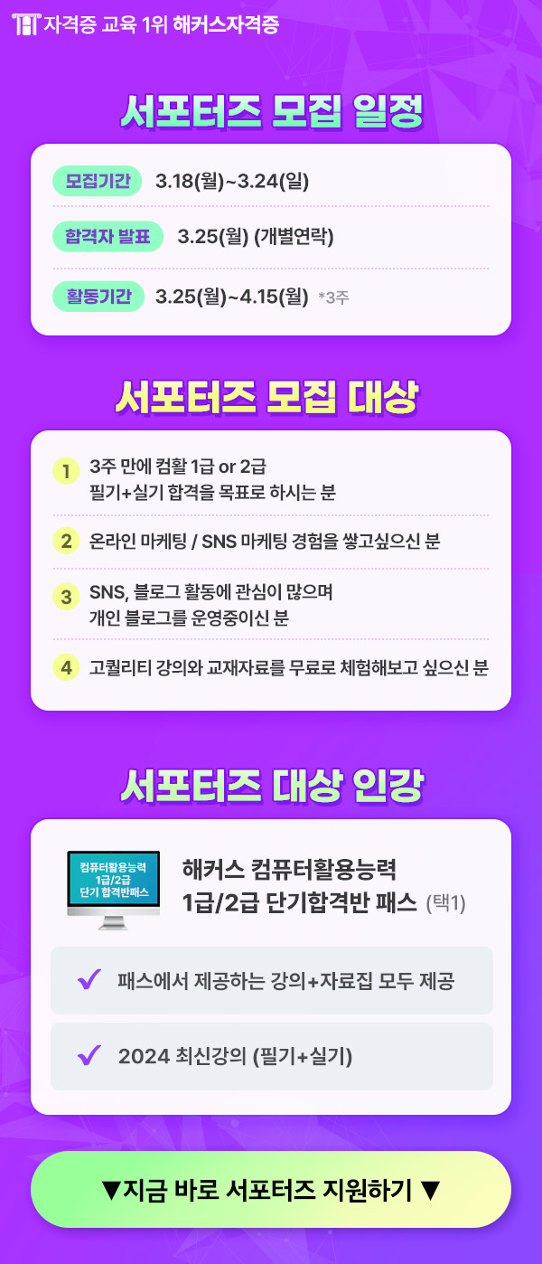 해커스 컴퓨터활용능력 서포터즈 5기를