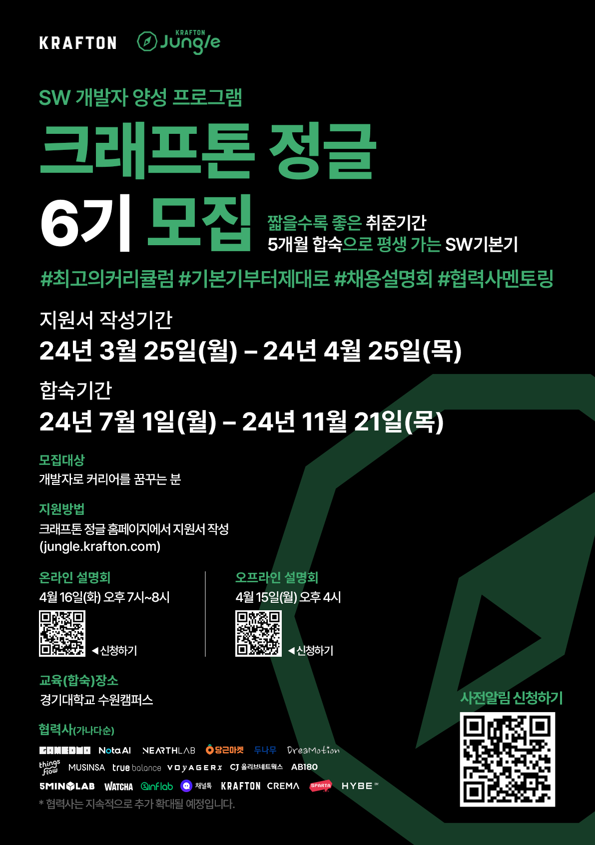 ※ 협력사 : 니어스랩, 당근마켓, 드림모션, 무신사, 보이저엑스, CJ올리브네트웍스, 왓챠, 크래프톤, 팀스파르타, 하이브IM 등