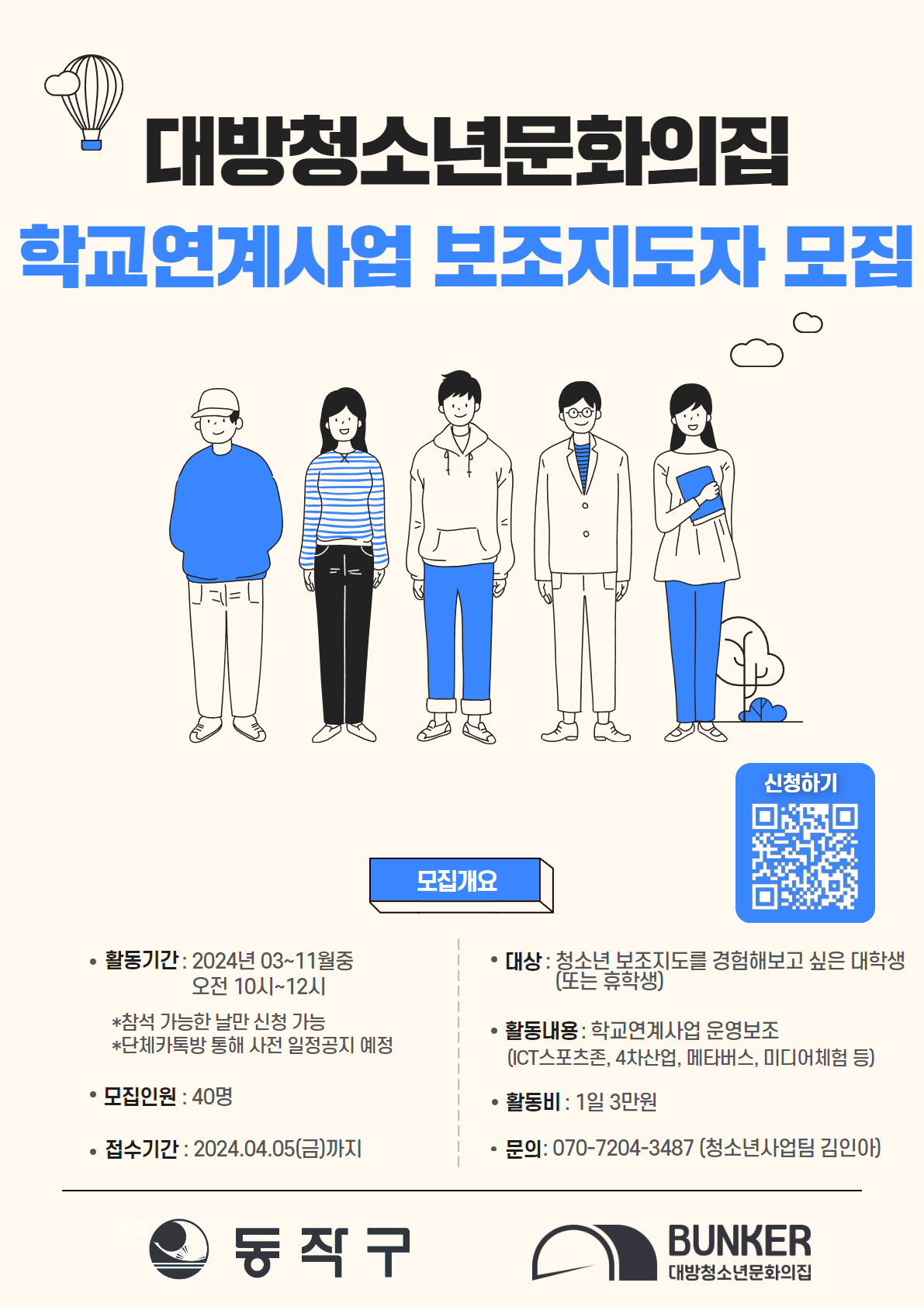 대방청소년문화의집에서 학교연계사업 보조지도자를 모집합니다!
