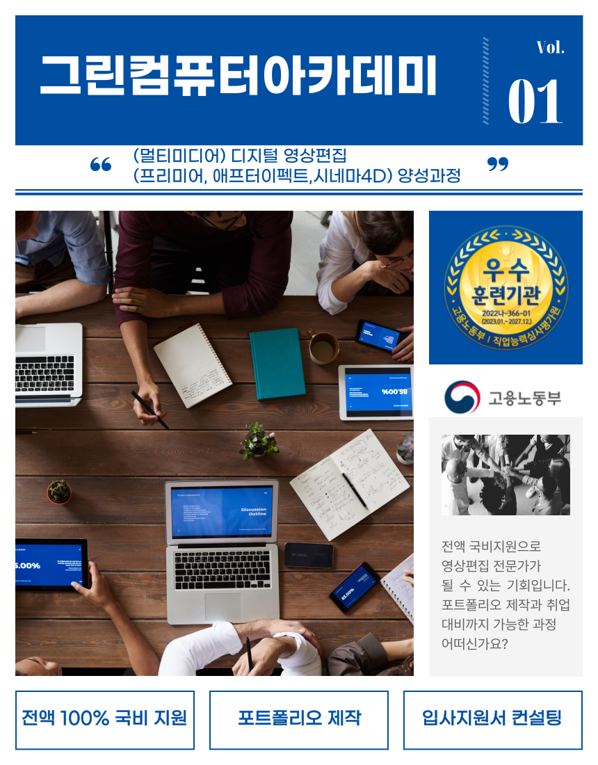 (멀티미디어) 영상콘텐츠 제작을 위한 영상편집(프리미어, 애프터이펙트,시네마4D) 양성-A