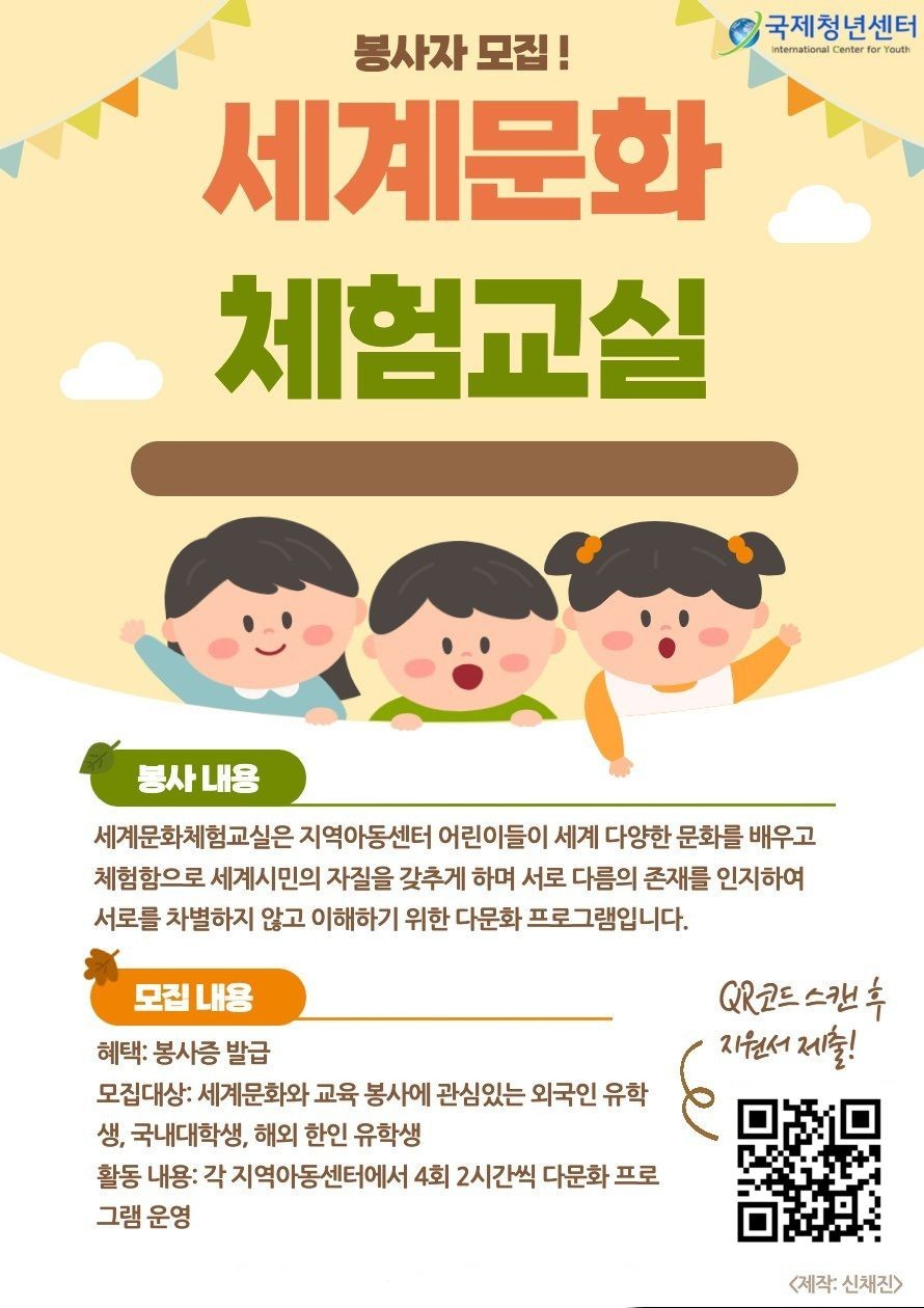 * 모집대상: 세계문화와 교육봉사에 관심 있는 국내 대학생 및 외국인 유학생(휴학생 가능)