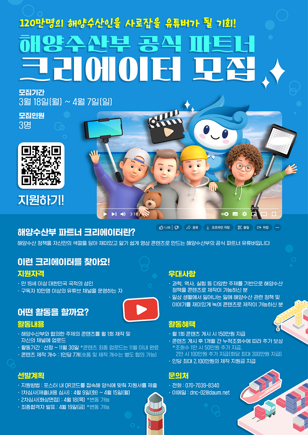 -해양수산부와 협의한 주제의 콘텐츠를 월 1회 제작 및 자신의 채널에 업로드