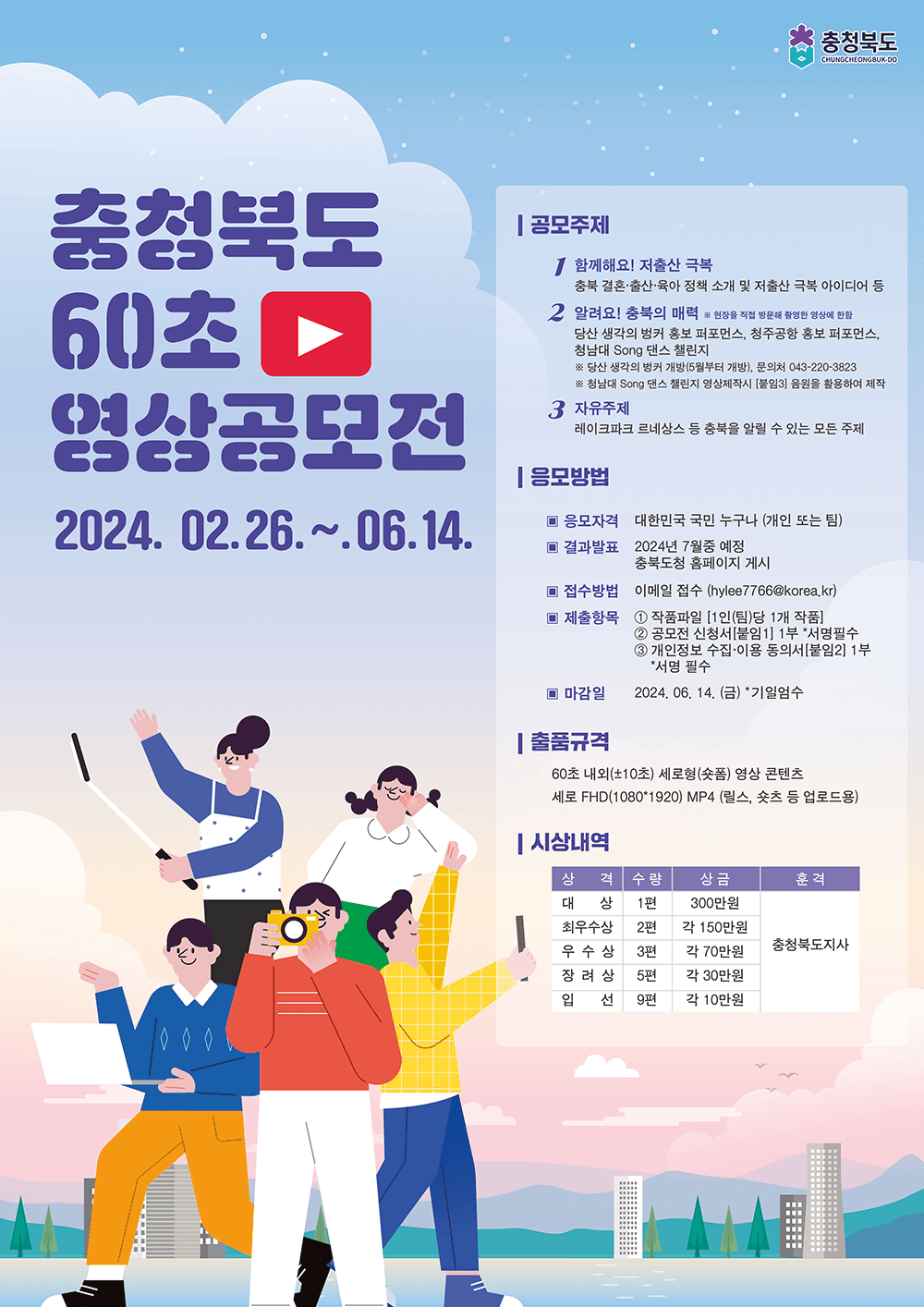 ❍ 공 모 명 : 2024 충청북도 60초 영상 공모전