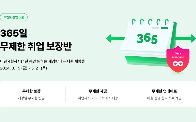 프로그램 종료 후 1년 이내 취업 실패시 전액 환불, (~3/14) 얼리버드 할인 380만원, 정가 460만원