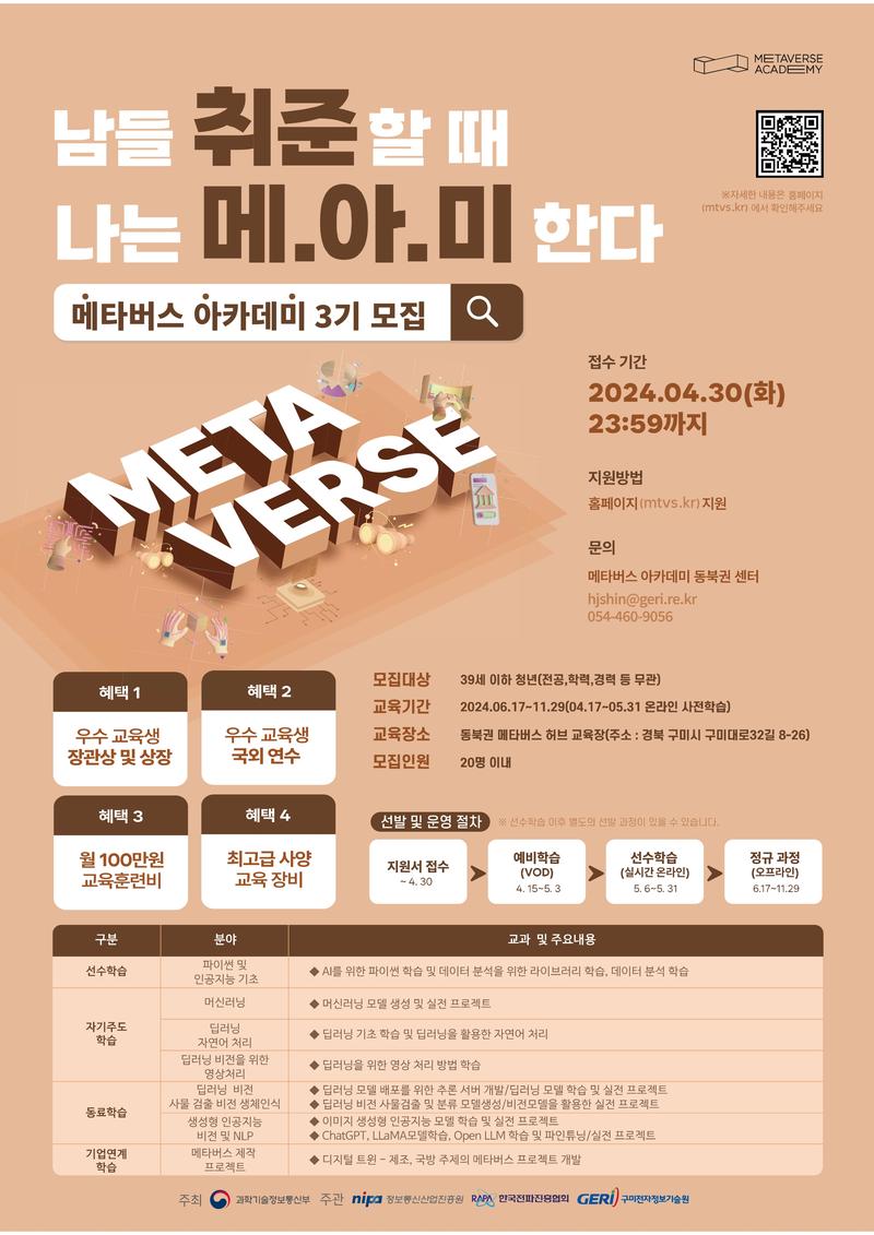 - 메타버스 아카데미 3기 신청 링크 : https://docs.google.com/forms/d/e/1FAIpQLSexqhMPpNgcmSuOg_my11y0i1kJ5PIS3Ys_OIq1VrHvQA0AwQ/viewform