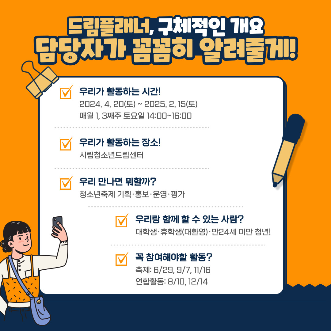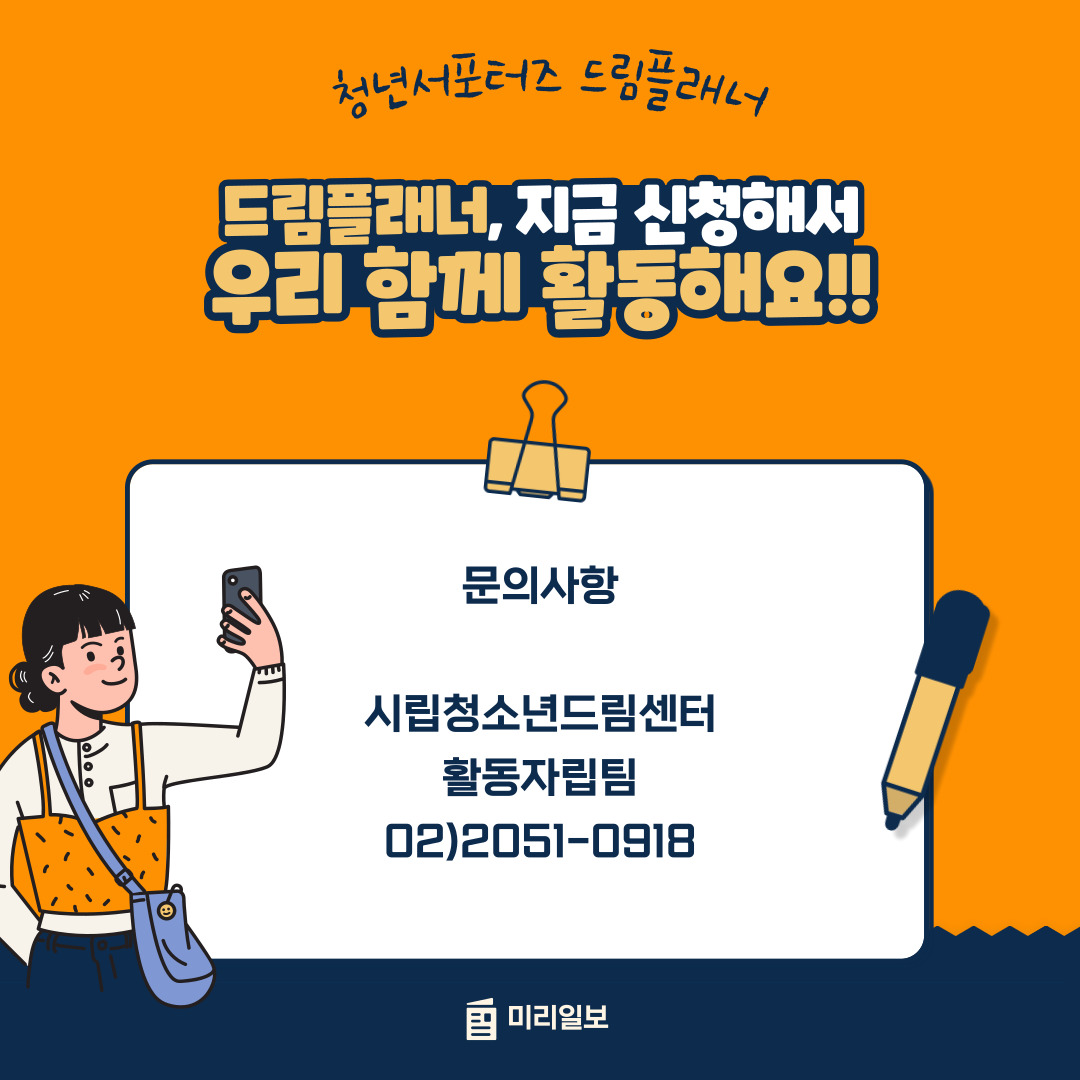 시립청소년드림센터 축제 기획 및 홍보 서포터즈 '드림플래너' 추가 모집