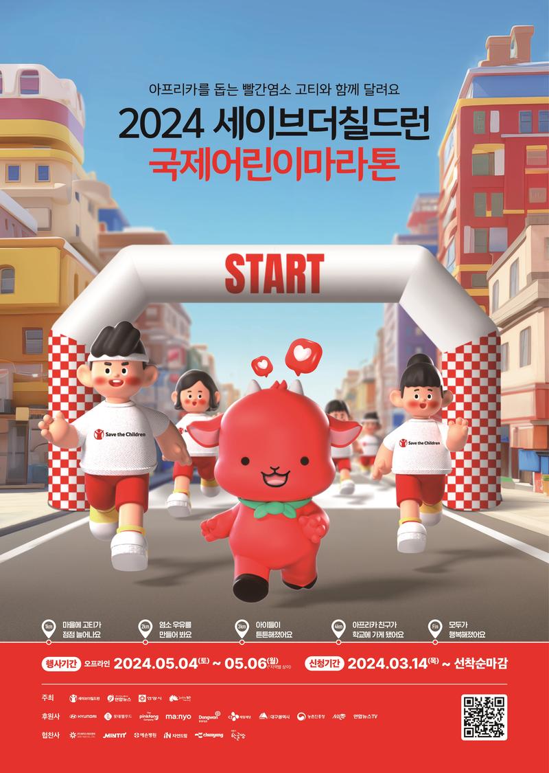 - 2024년 세이브더칠드런 국제어린이마라톤 경기안양지역 자원봉사자를 모집하오니 많은 지원과 관심 바랍니다.