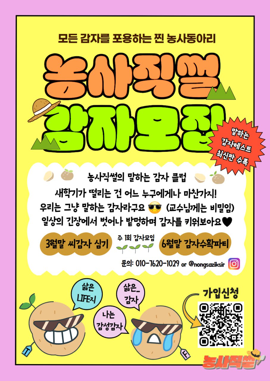 인스타그램(@nongsaziksir)에서 농사직썰의 다양한 활동 사진과 정보를 확인할 수 있습니다! 본 동아리는 대학생 회원들이 자치적으로 운영합니다. 종교, 정치, 사회 단체와 관련 없음을 밝힙니다. 소소한 궁금증도 괜찮습니다. 문의사항은 아래 연락처로 보내주세요!!