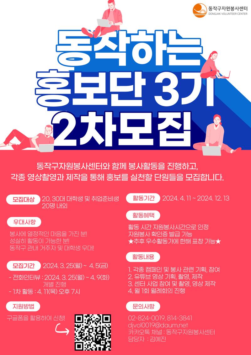 [동작구자원봉사센터] 제 3기 동작하는 홍보단 추가 모집 (~4/5)