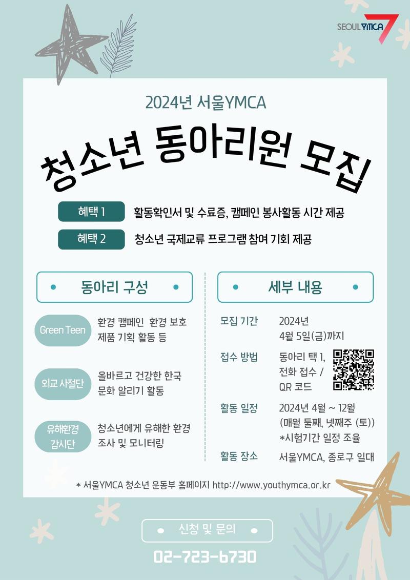 [2024 서울YMCA 청소년연합클럽 단원 모집]