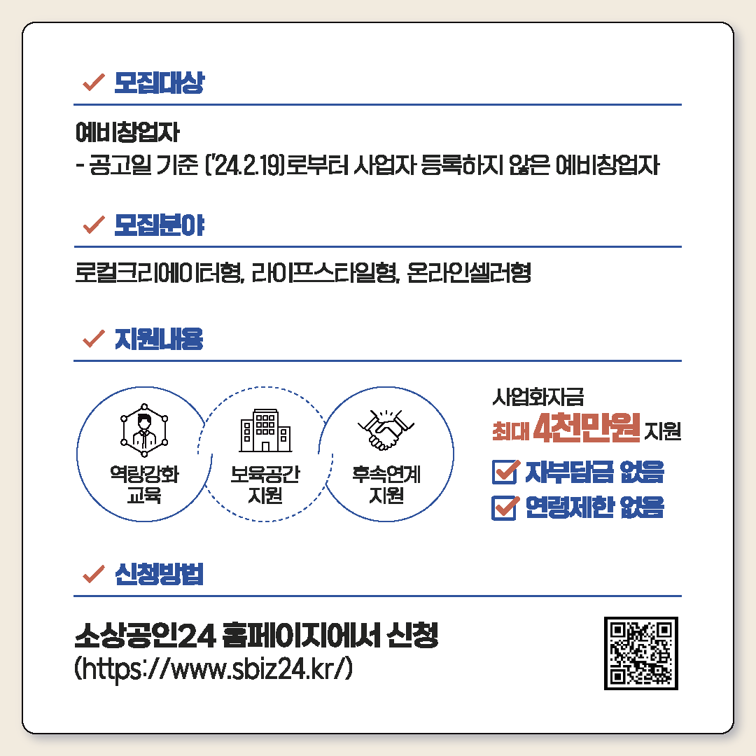 - 공고일 기준 (24.02.19)로부터 사업자 등록을 하지 않은 예비창업자