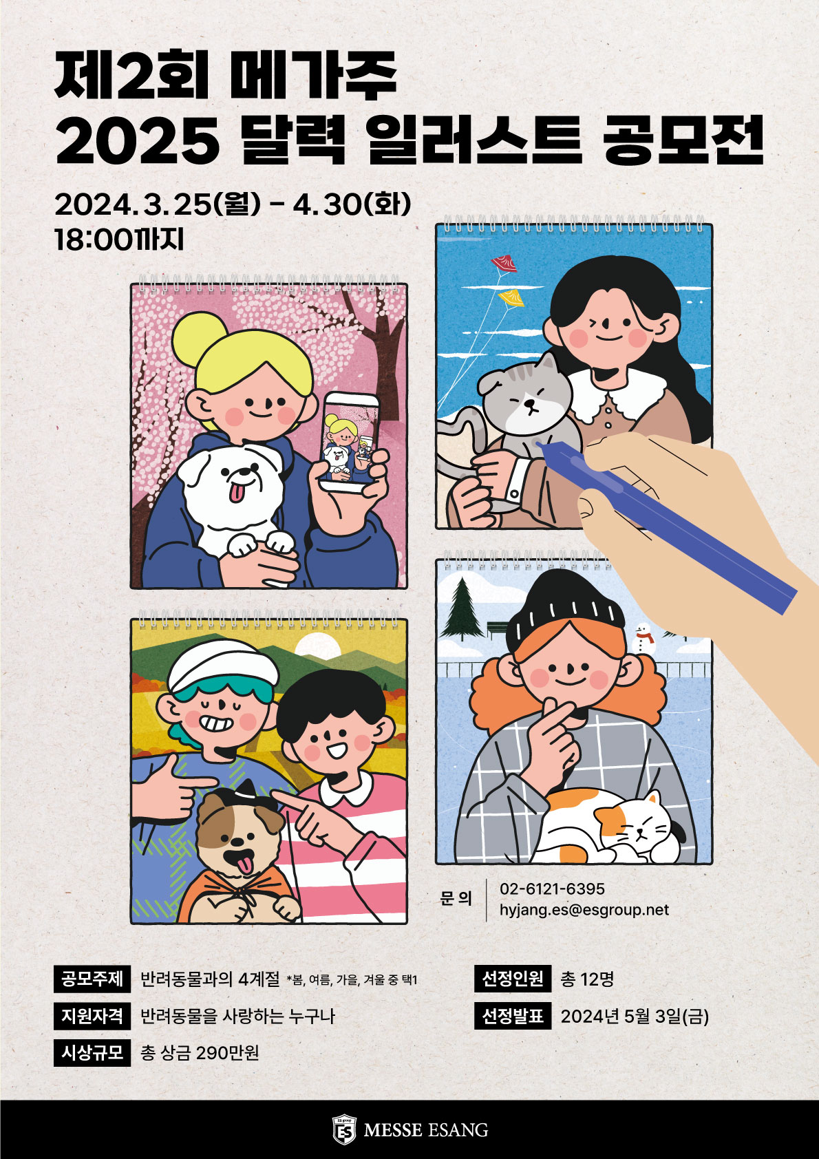 - 수상작은 2025 메가주 달력으로 제작되어 ‘2024 메가주 일산(하) 굿즈샵’에서 1회 한정 판매 예정이며, 판매 수익금은 ㈜메쎄이상에 귀속됨.