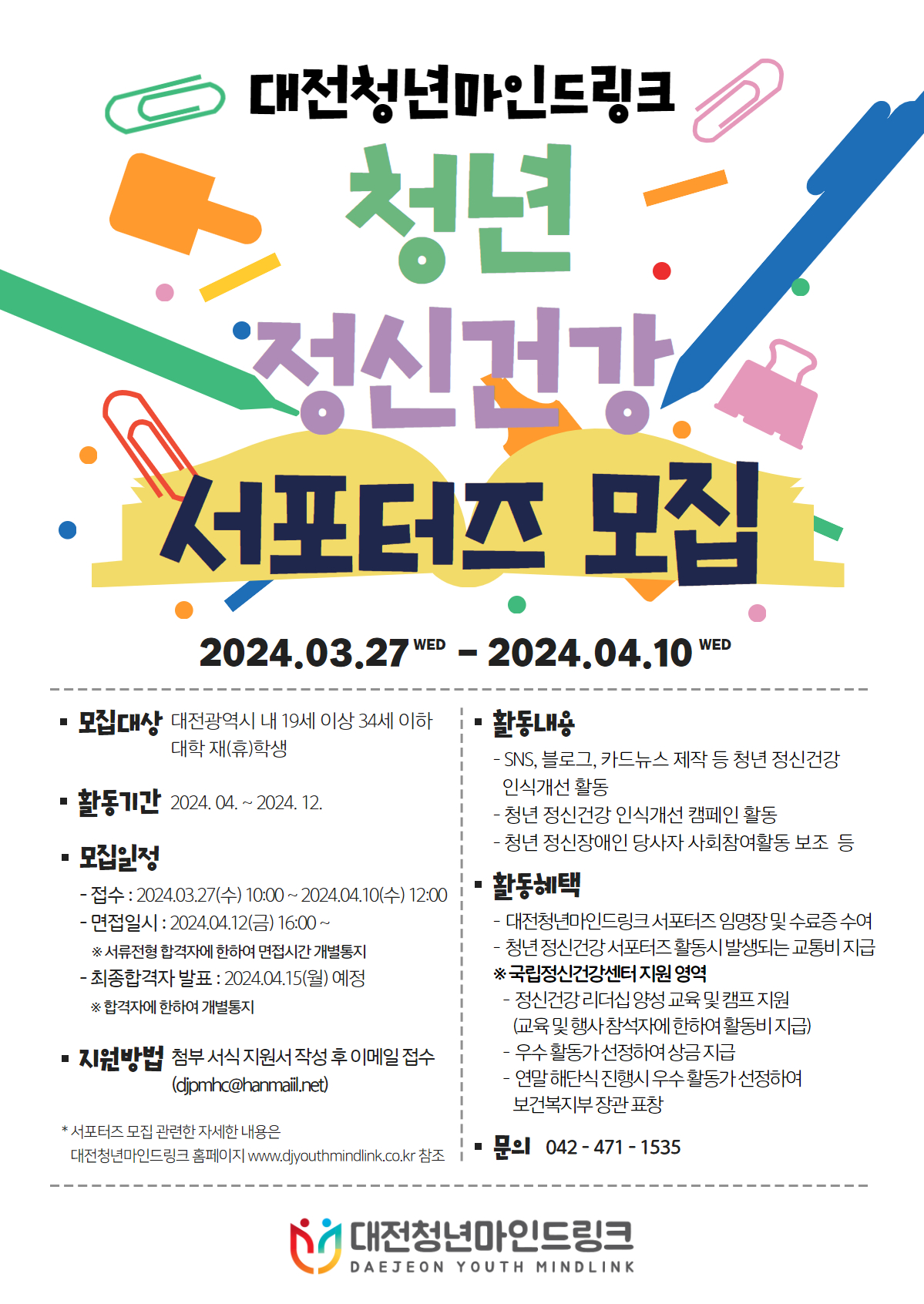 ☎ 문의: 대전청년마인드링크 042-471-1535