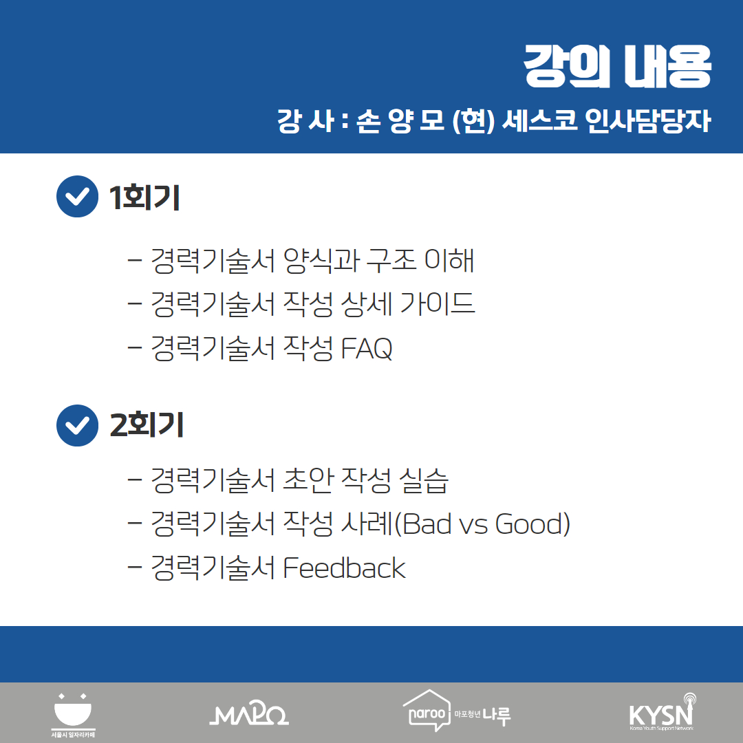 #마포청년나루 #청년공간 #취창업프로그램 #무료취창업프로그램 #취업특강 #취업준비 #경력기술서특강