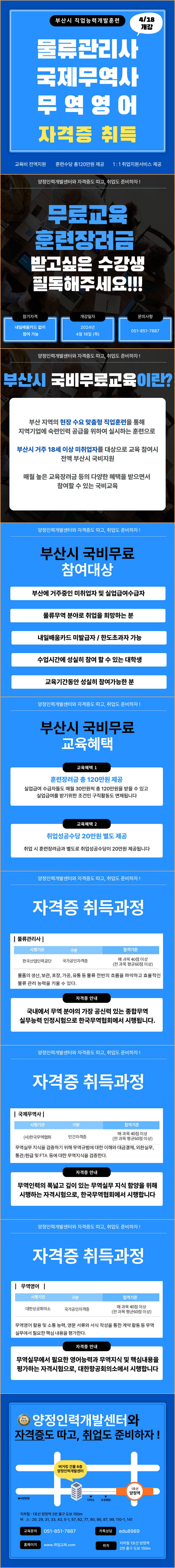 [부산광역시] 전액지원받으면서 물류관리사/국제무역사/무역영어 자격증&취업 한번에 준비하자!