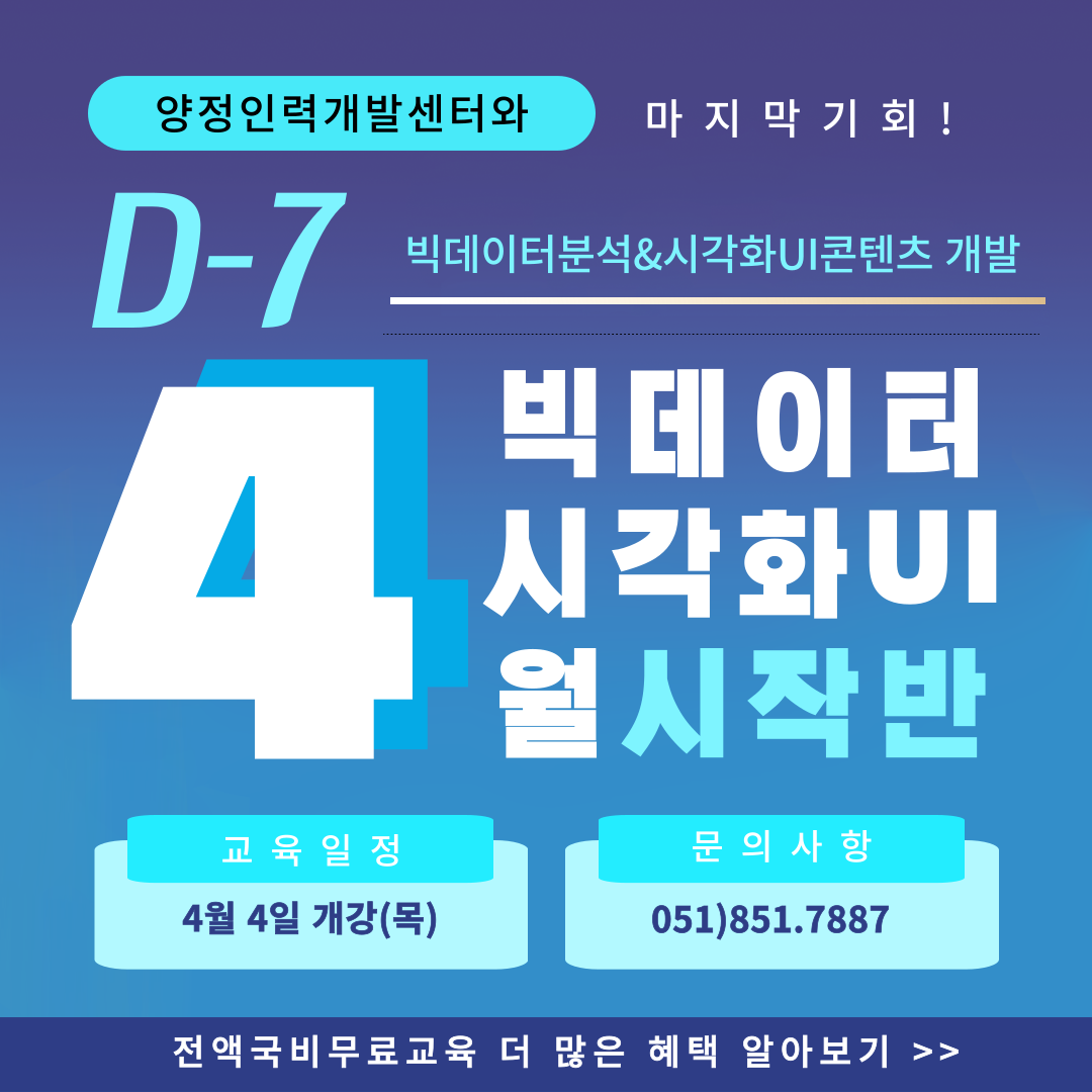 ⚡[전액국비지원/훈련수당 제공]빅데이터 분석 & 시각화 UI콘텐츠 개발 모집【🔥선착순 모집마감】