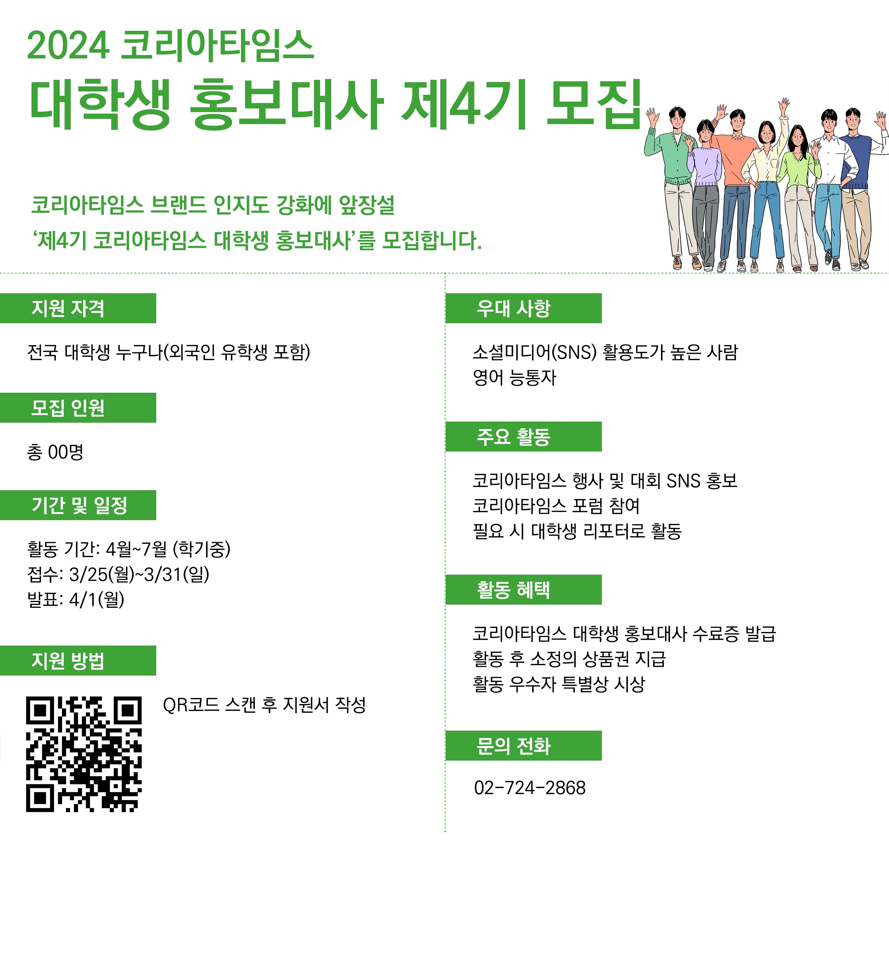 [2024 코리아타임스 대학생 홍보대사 제4기 모집]