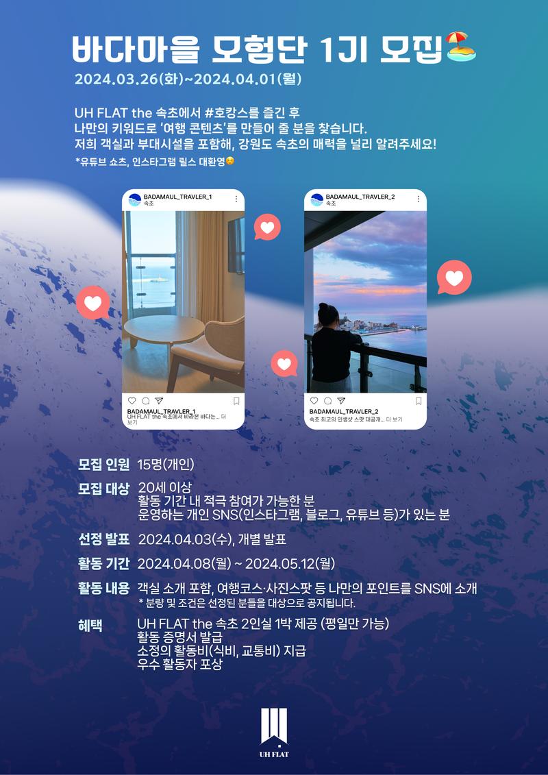 UH FLAT the 속초에서 호캉스를 즐긴 후 나만의 키워드로 여행 콘텐츠를 만들어 줄 분을 찾습니다.