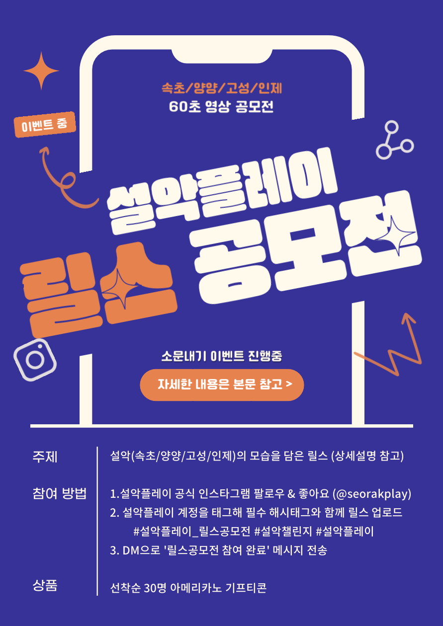 - 설악플레이 릴스공모전과 중복 응모 가능합니다.