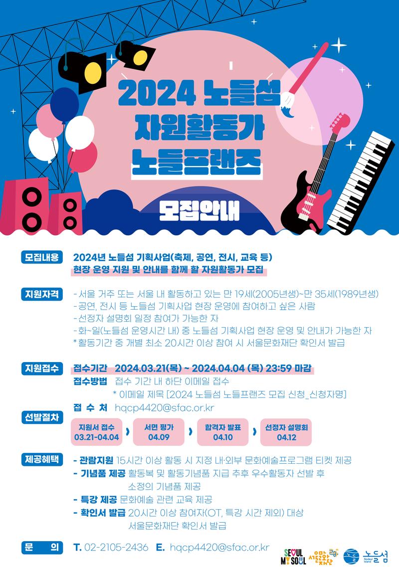 2024년 노들섬 기획사업(축제, 공연, 전시, 교육 등) 현장 운영 지원 및 안내를 함께 할 자원활동가 모집
