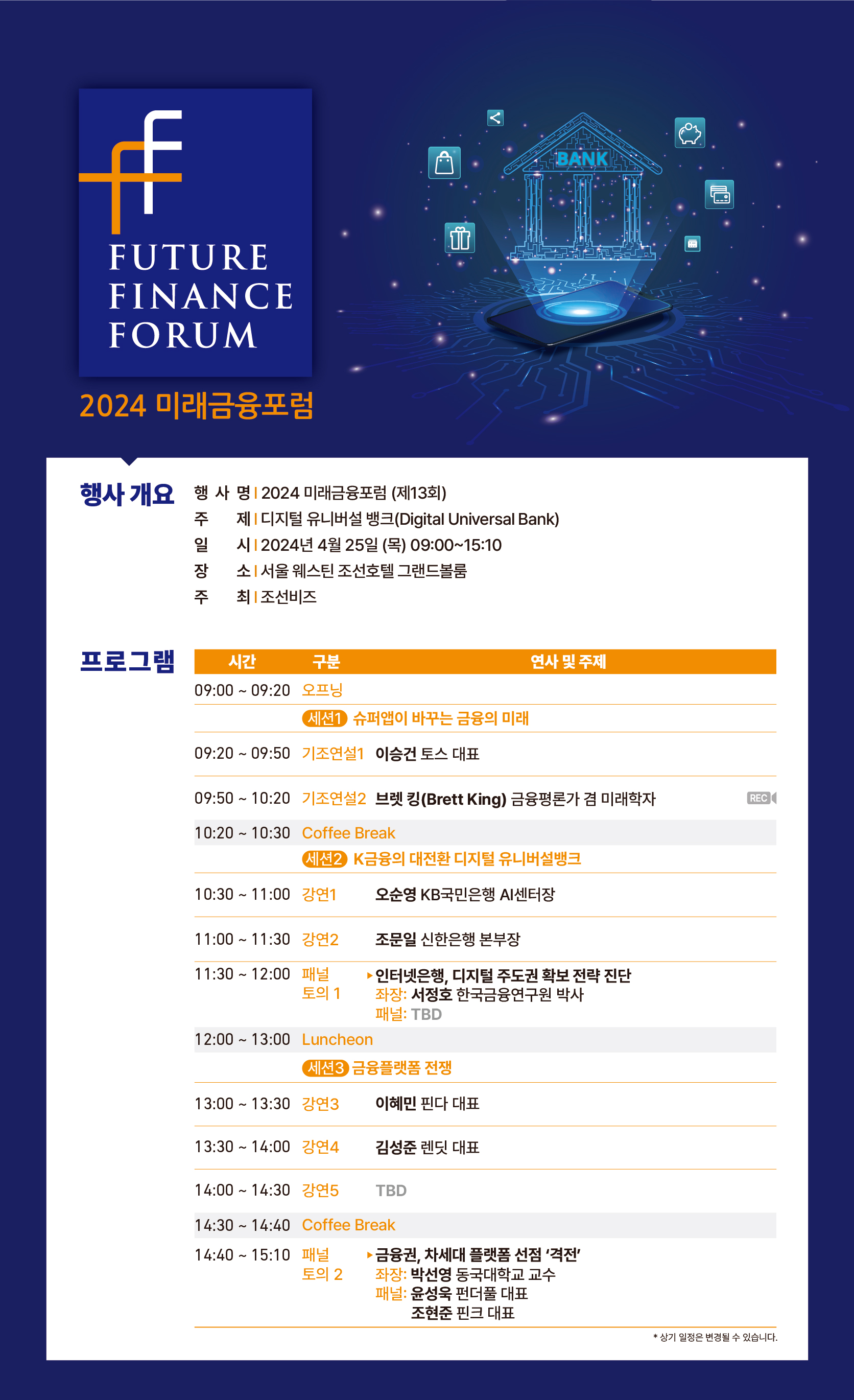 '디지털 유니버설 뱅크(Digital Universal Bank)'라는 주제로 진행되는 2024 미래금융포럼!