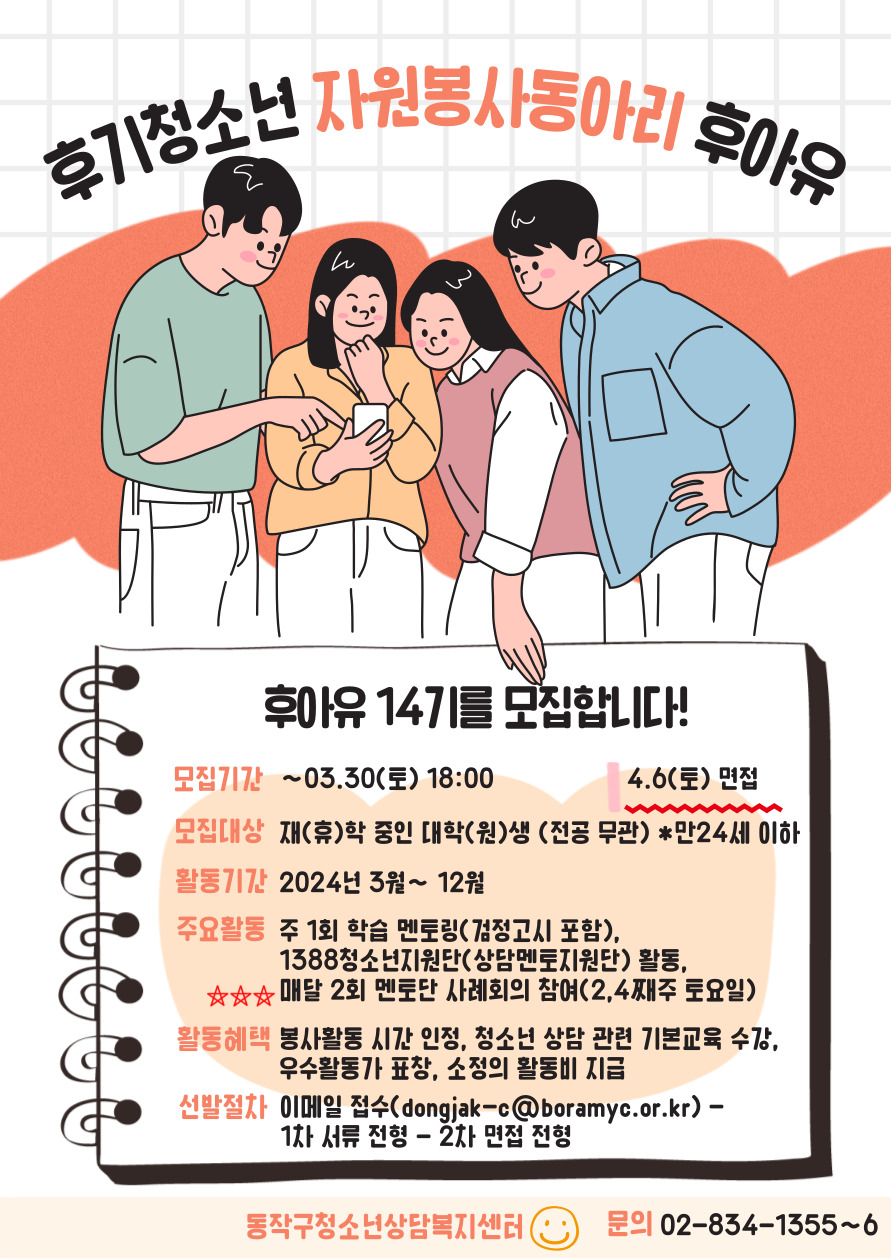- 신청서 작성 후 기관 메일로 접수(dongjak-c@boramyc.or.kr)