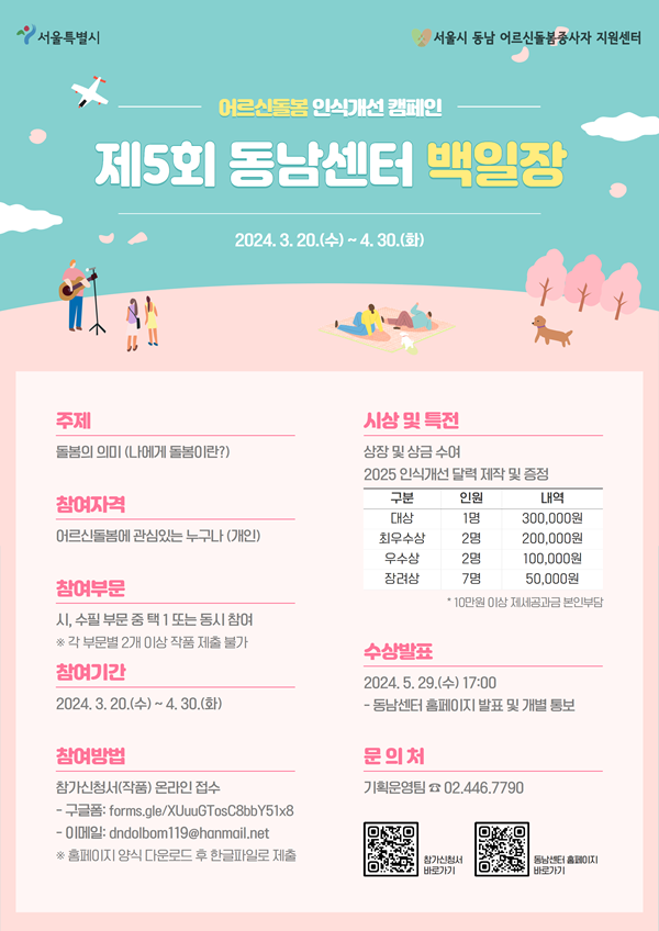 - 이메일: dndolbom119@hanmail.net *홈페이지 양식 다운로드 후 한글파일로 제출