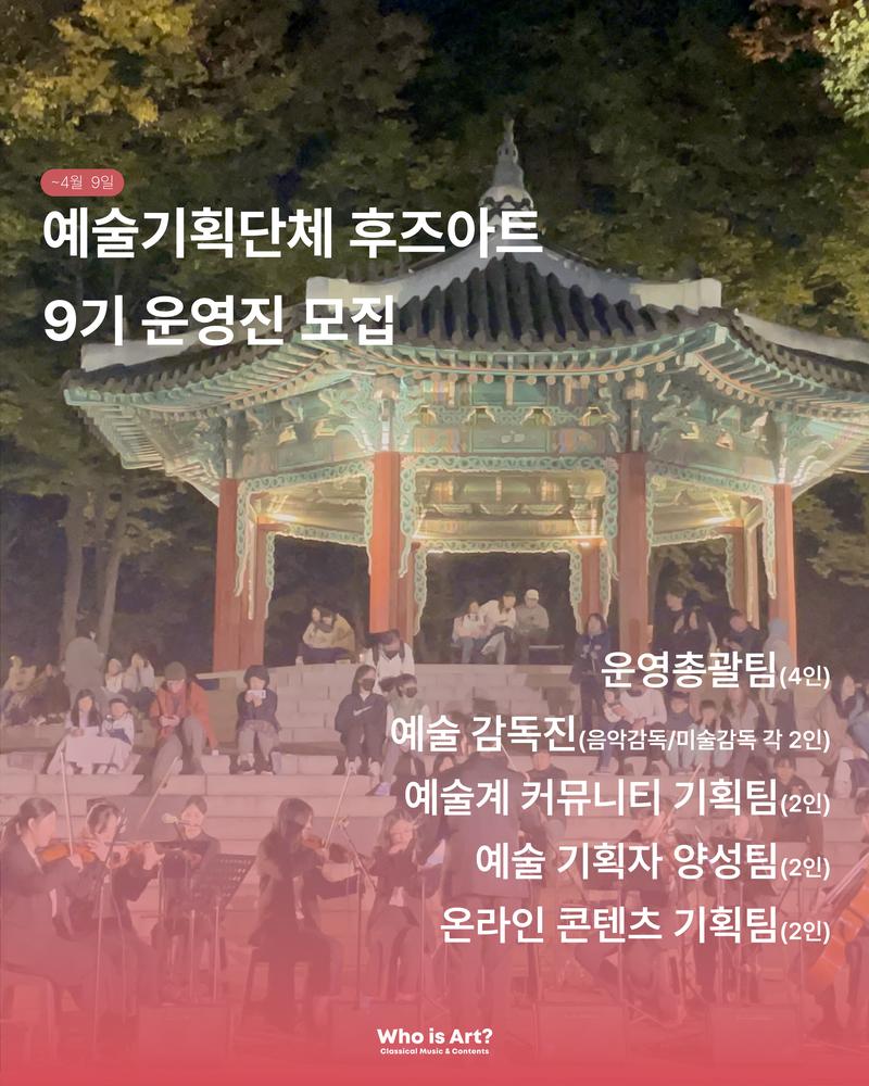 📢 국내 최대 예술가 커뮤니티를 꿈꾸는 ‘예술기획단체 후즈아트’를 함께 운영할 운영진을 모집합니다.(~4/9)