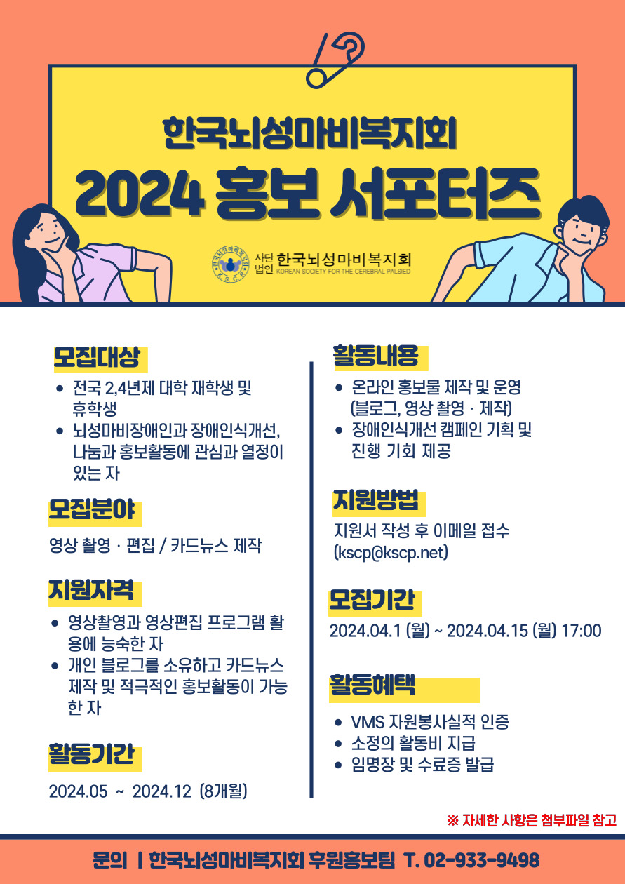 한국뇌성마비복지회와 홍보 콘텐츠 제작을 함께 해주실 서포터즈를 모집합니다!