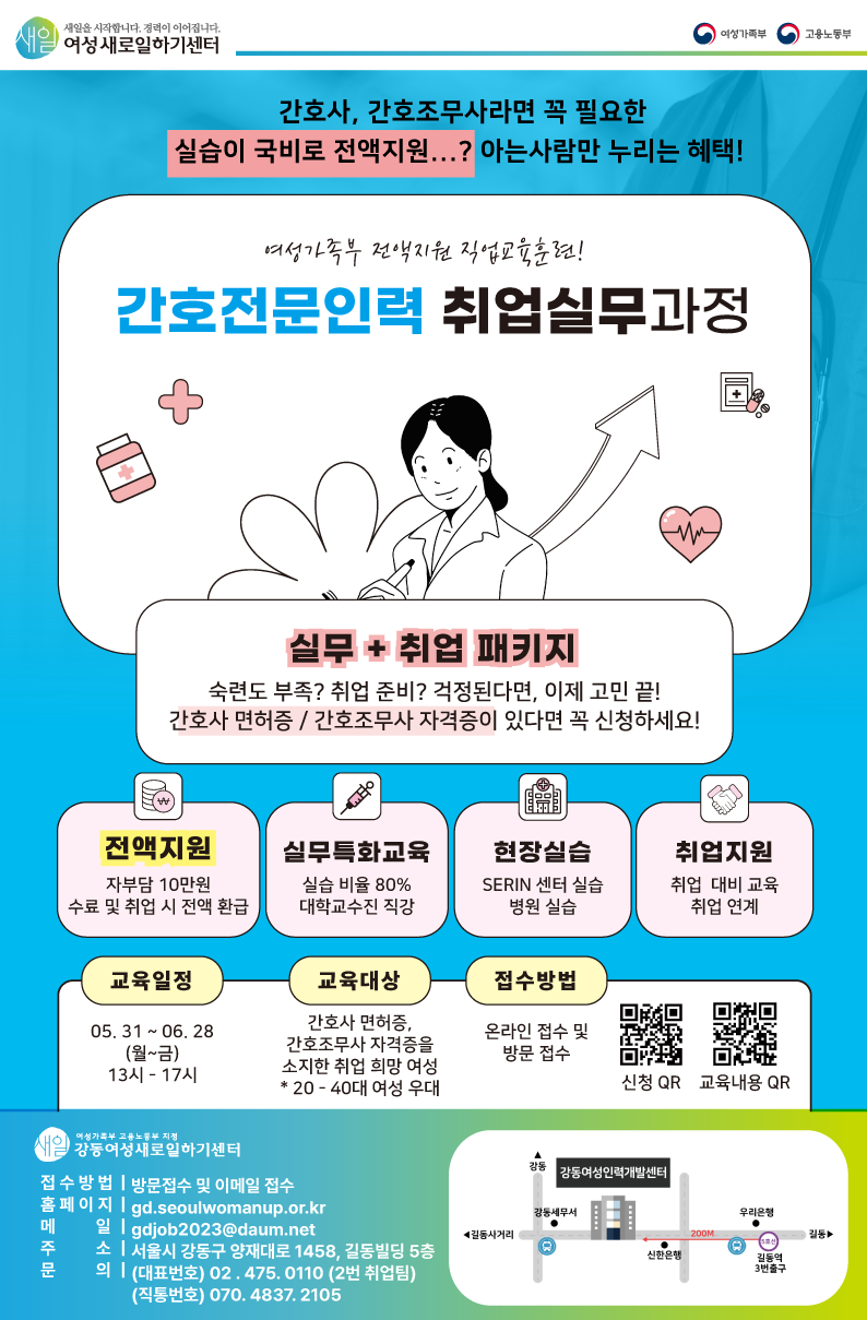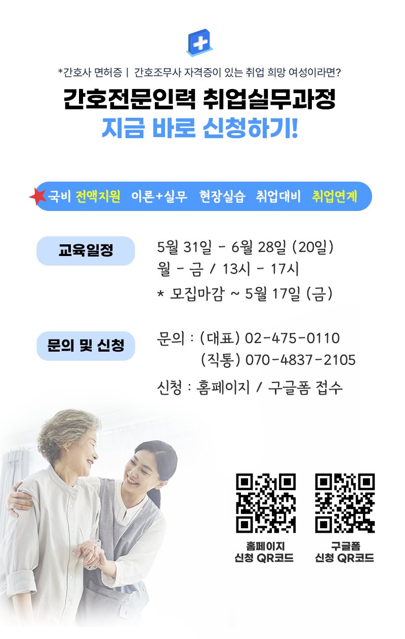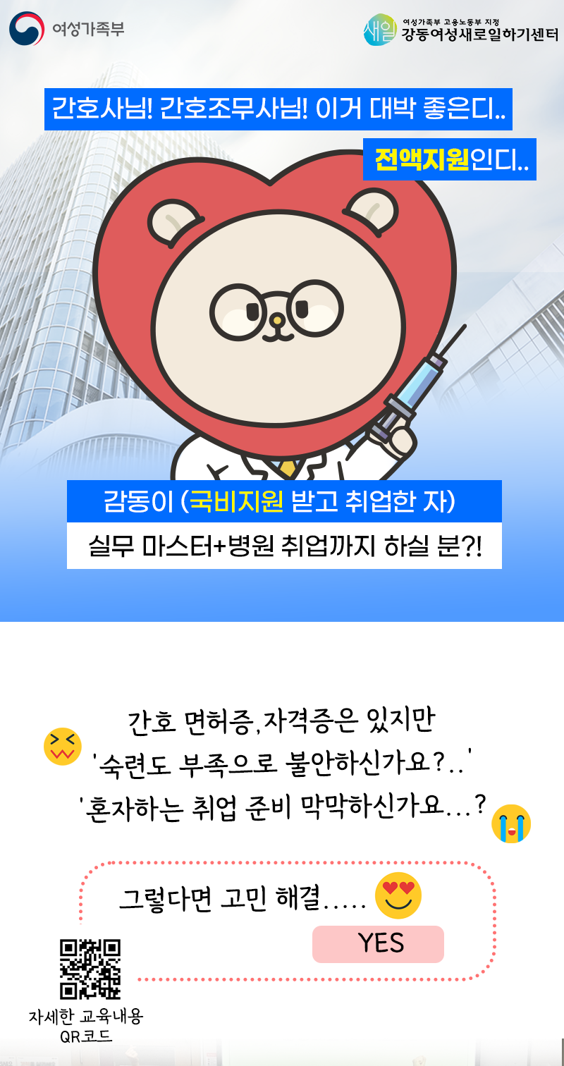 나라에서 전액지원하니 취업을 희망하시는 간호사님 간호조무사님들의 많은 신청 부탁드려요❤️