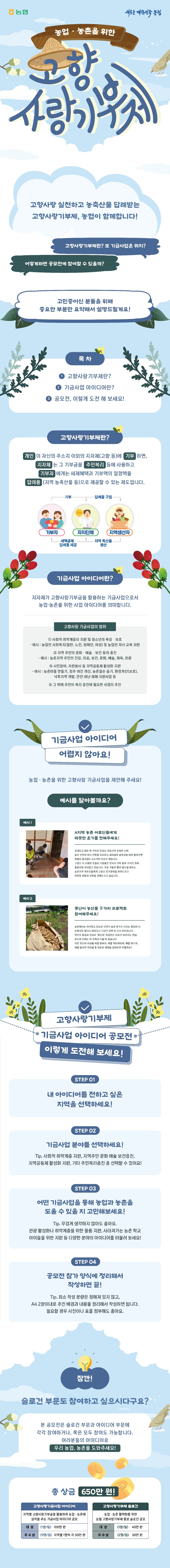 - 지역별 고향사랑기부금을 활용하여 농업 · 농촌에 실익을 주는 기금사업아이디어 공모