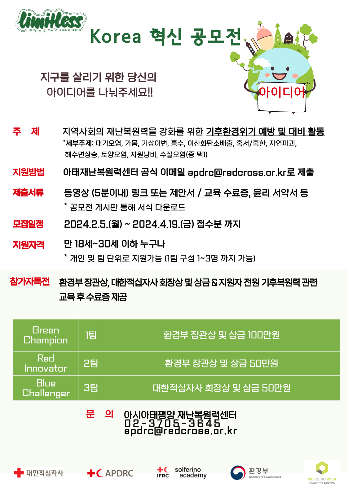 - 아태재난복원력센터 공식 이메일 apdrc@redcross.or.kr로 제출