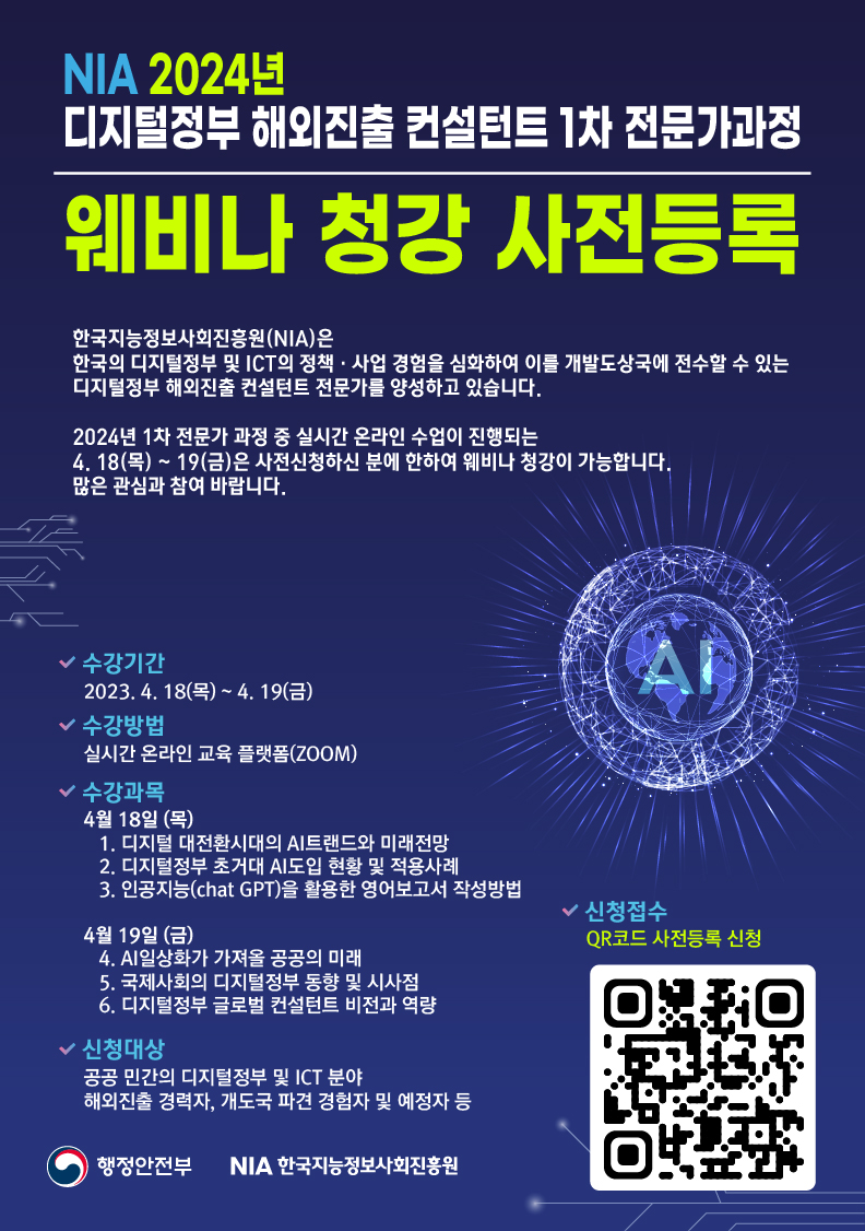 ▷ 교육명 : 2024년 디지털정부 해외진출 컨설턴트 1차 전문가 과정