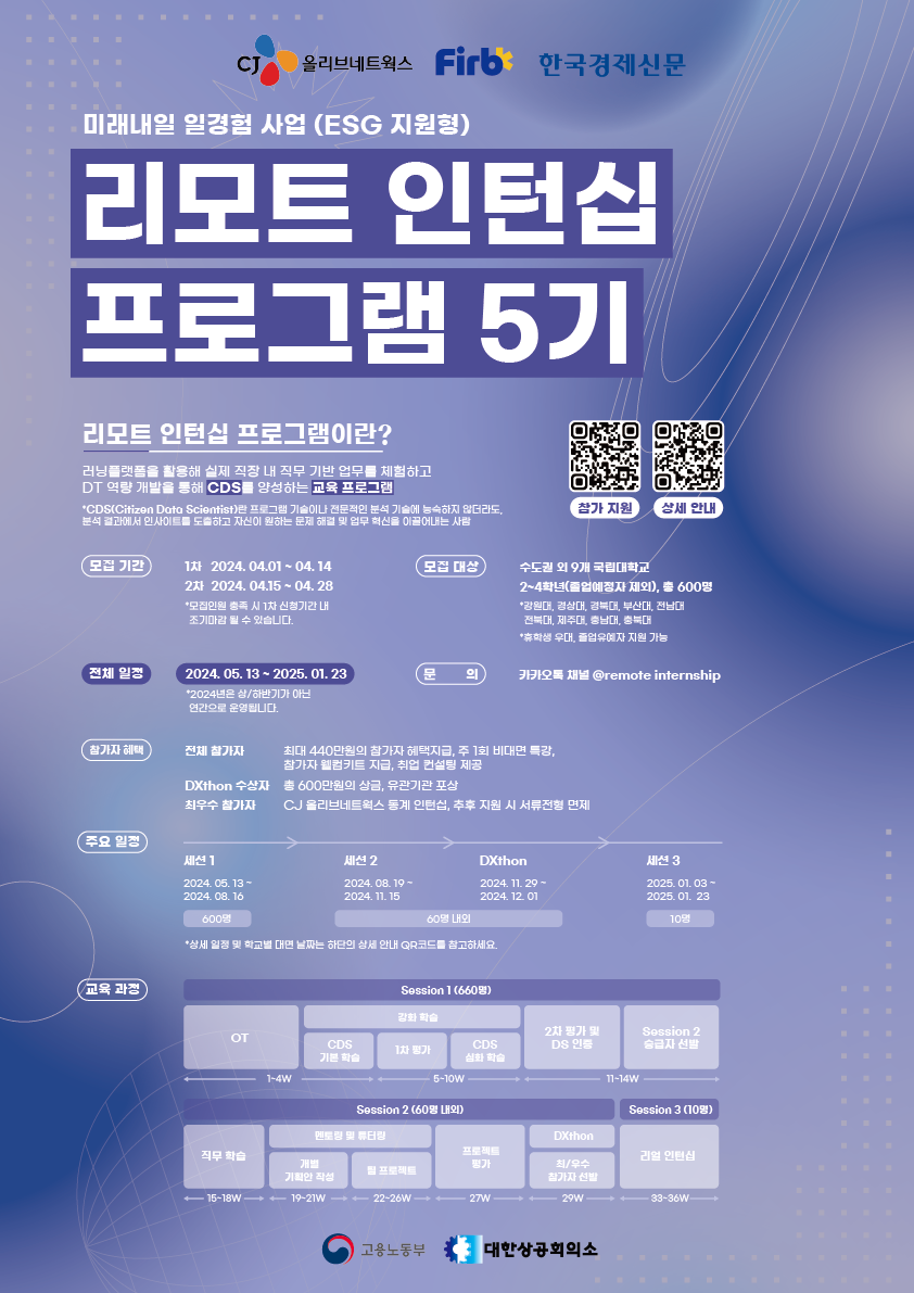 CJ 올리브네트웍스, Firb, 한국경제신문이 함께하는 리모트인턴십 프로그램에서 데이터 기획/분석 역량을 키우고 현장 실무형 인재로 성장하세요!🙆