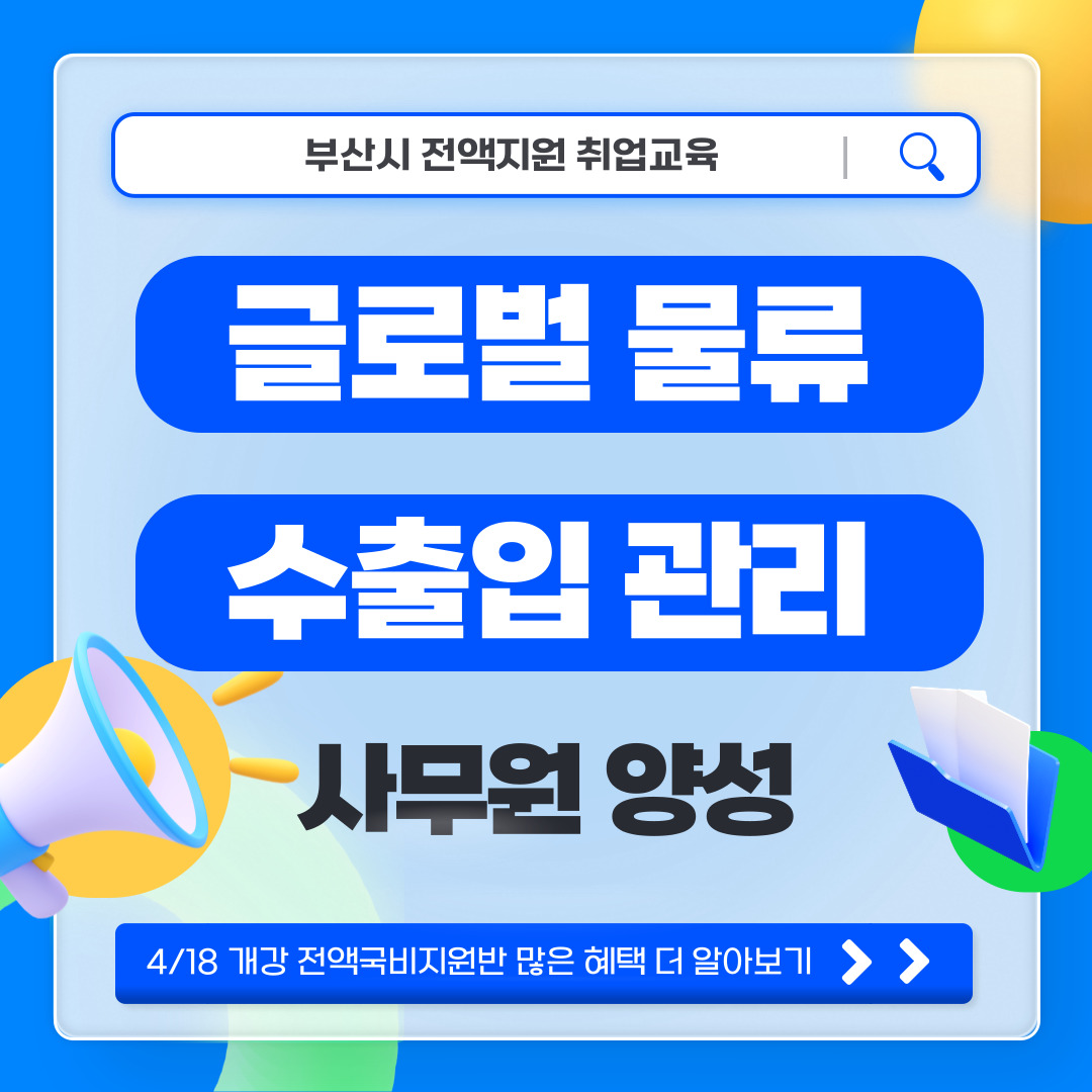 [부산광역시 주관/전액지원] 물류관리사, 국제무역사, 무역영어 자격증 취득&취업준비반