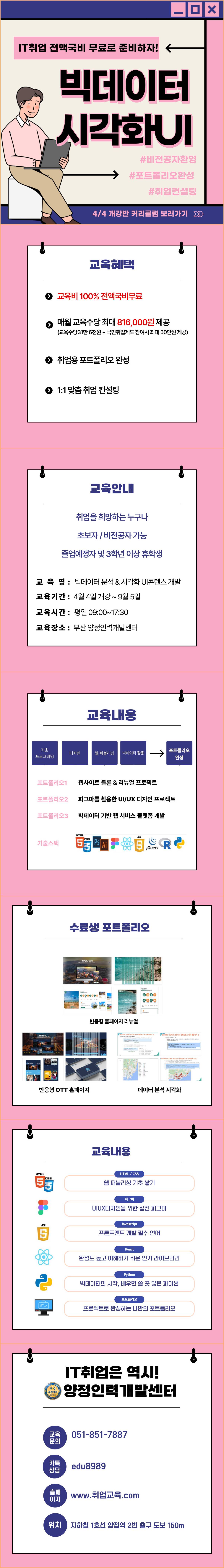 ✔️교육장소 : 고용노동부 지정 우수훈련기관 양정인력개발센터